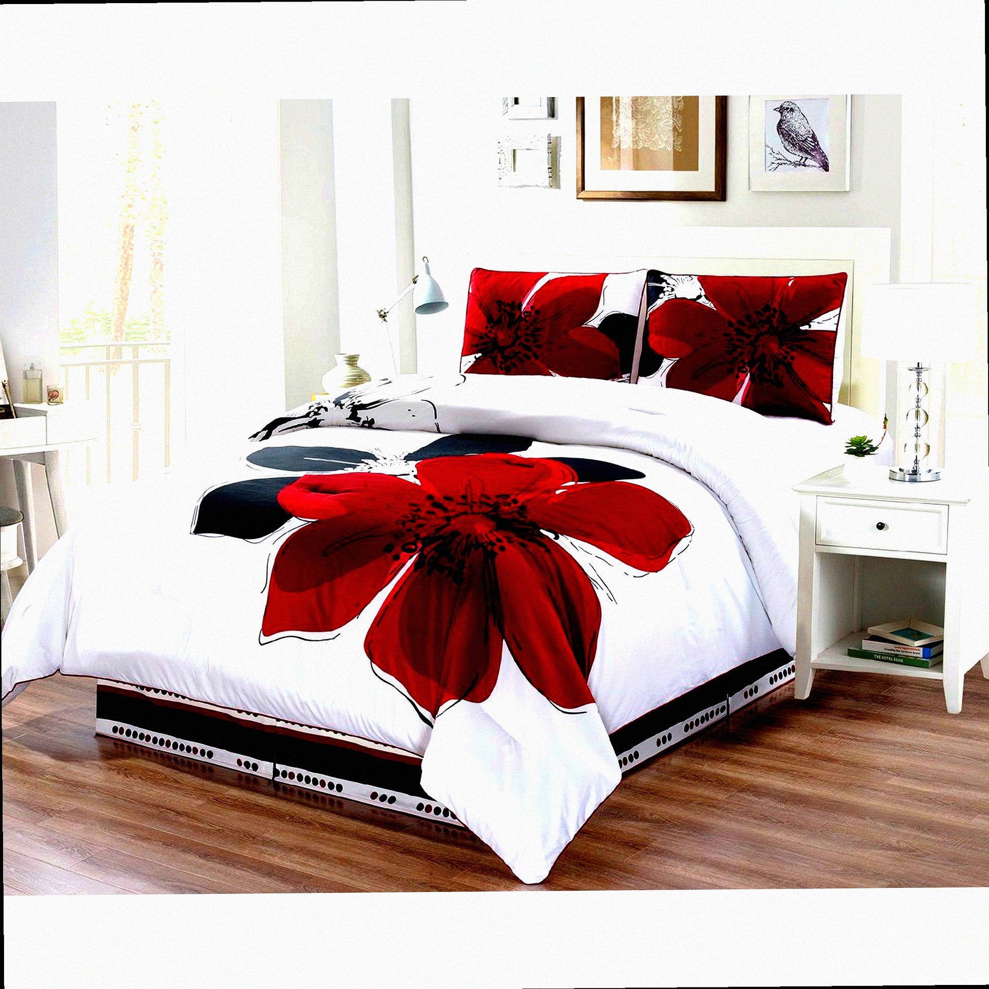 Luxury Reversible Comforter Set - Queen Size - Burgundy Red, Black, White, Grey - Soft Down Alternative Bedding - 4-Piece Fine Printed