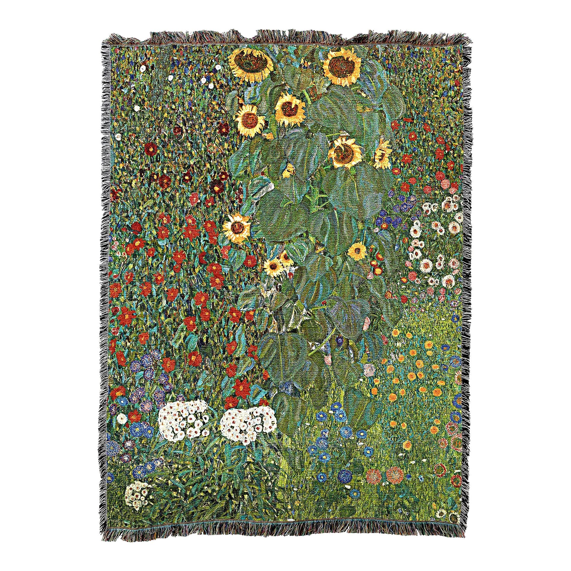 Sunflower Serenity: Gustav Klimt Cotton Tapestry Blanket - Fine Art Garden Throw, Made in USA (72x54)
