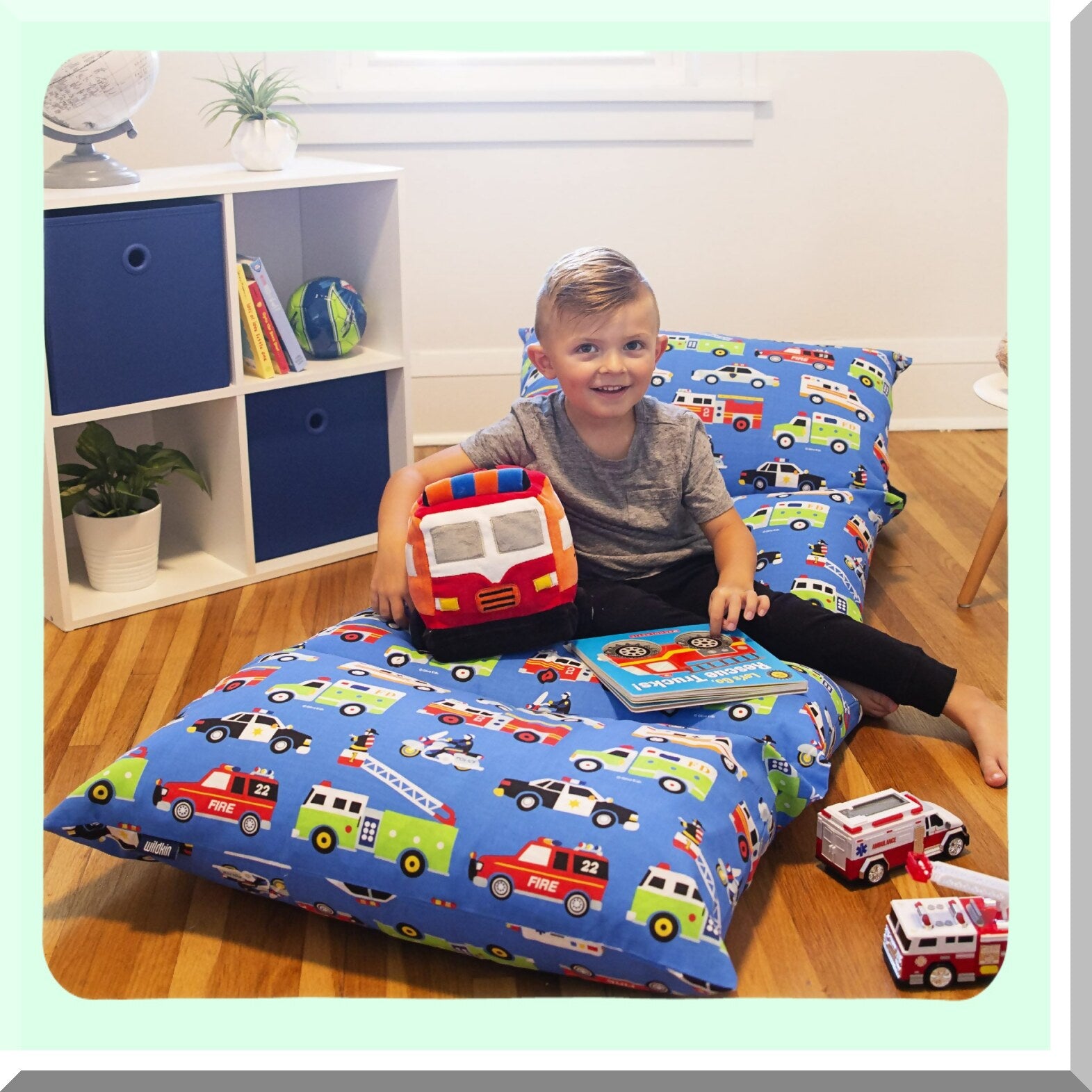 Superhero Sleepover Pillow Lounger - Kids Microfiber Floor Lounger for Boys and Girls, Travel-Friendly and Perfect for Sleepovers. Standard Size Pillows Not Included.