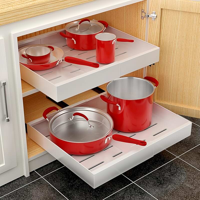 This pull-out sliding storage rack is designed for kitchen and bathroom use, offering an easy-to-install, no-drill adjustable shelf solution. Made with durable metal, it features non-slip grid drawers to keep items secure. The waterproof design helps protect contents from moisture, making it suitable for humid environments. The rack provides efficient space-saving organization, allowing you to maximize storage in tight areas. Its smooth sliding mechanism ensures easy access to stored items, while the adjustable shelves accommodate various sizes. The sleek white finish complements different decor styles, adding a clean and organized look to your space. This two-pack set offers versatile storage options for cabinets, countertops, or shelves, helping to declutter and optimize your home environment. Ideal for organizing kitchen supplies, bathroom essentials, or other household items, it combines functionality with a modern design.