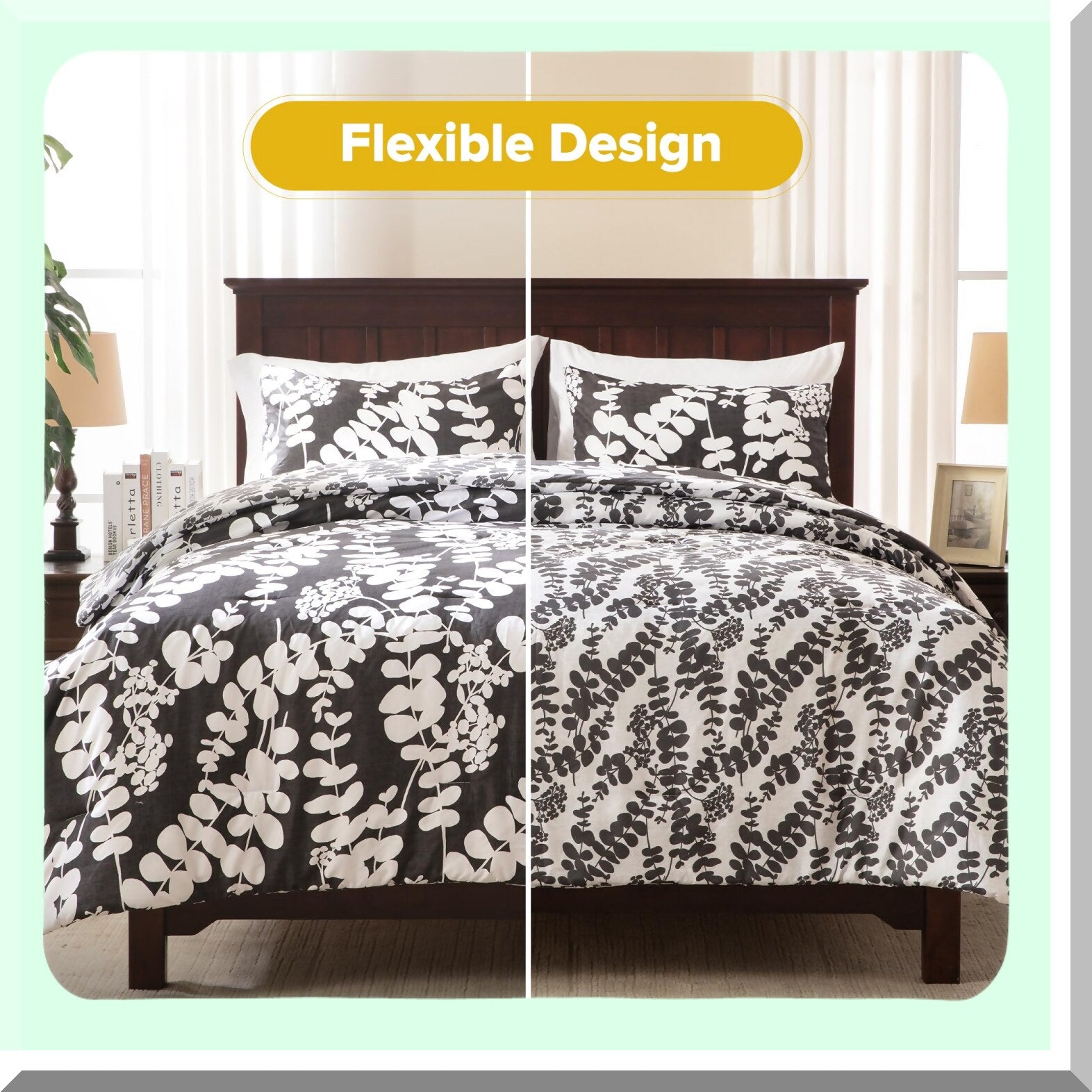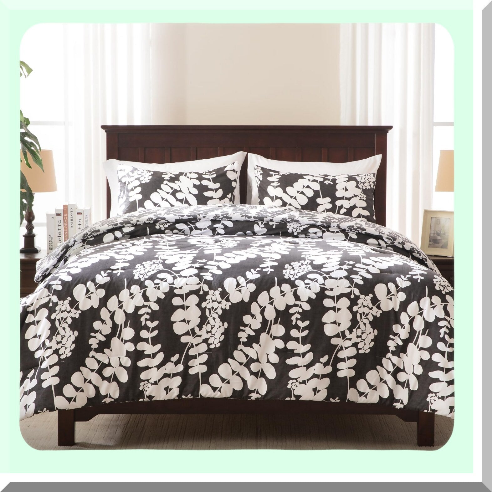 Breathable Floral Comforter Set - Lightweight All Season Farmhouse Bedding with Matching Shams - Cal Black 3 Piece Reversible Microfiber Comforters