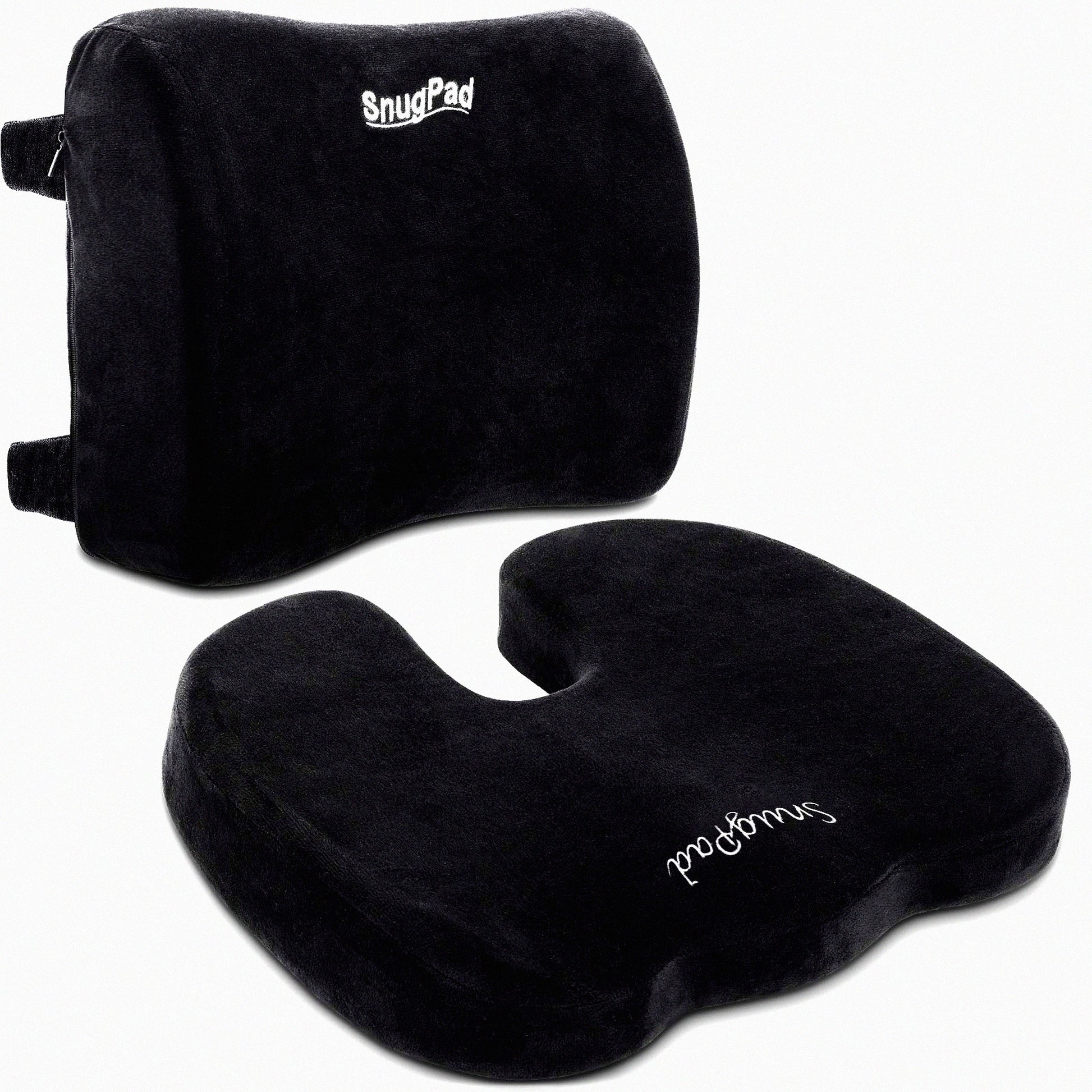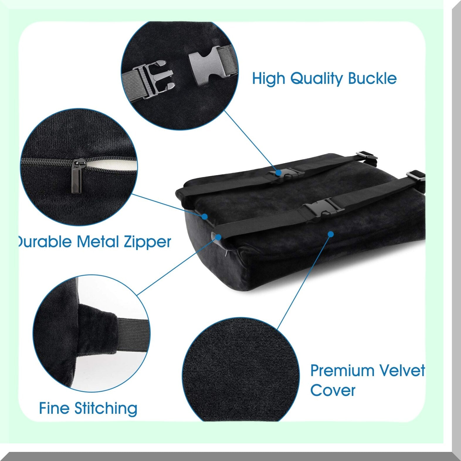ErgoSupport Memory Foam Lumbar Seat Cushion - Lower Back & Coccyx Support - Washable Velvet Covers - Non-Slip Bottom - Office & Car Seats - Black