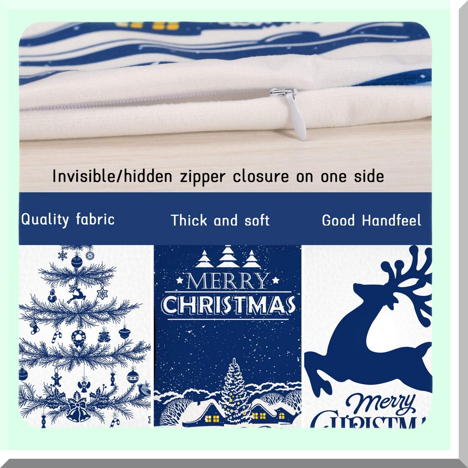 Snowy Christmas Pillow Cover Set - White Blue Xmas Tree Reindeer Throw Cushion Cases for Home Office Sofa Bed Party Decoration - 4 Pack, 18" x 18"