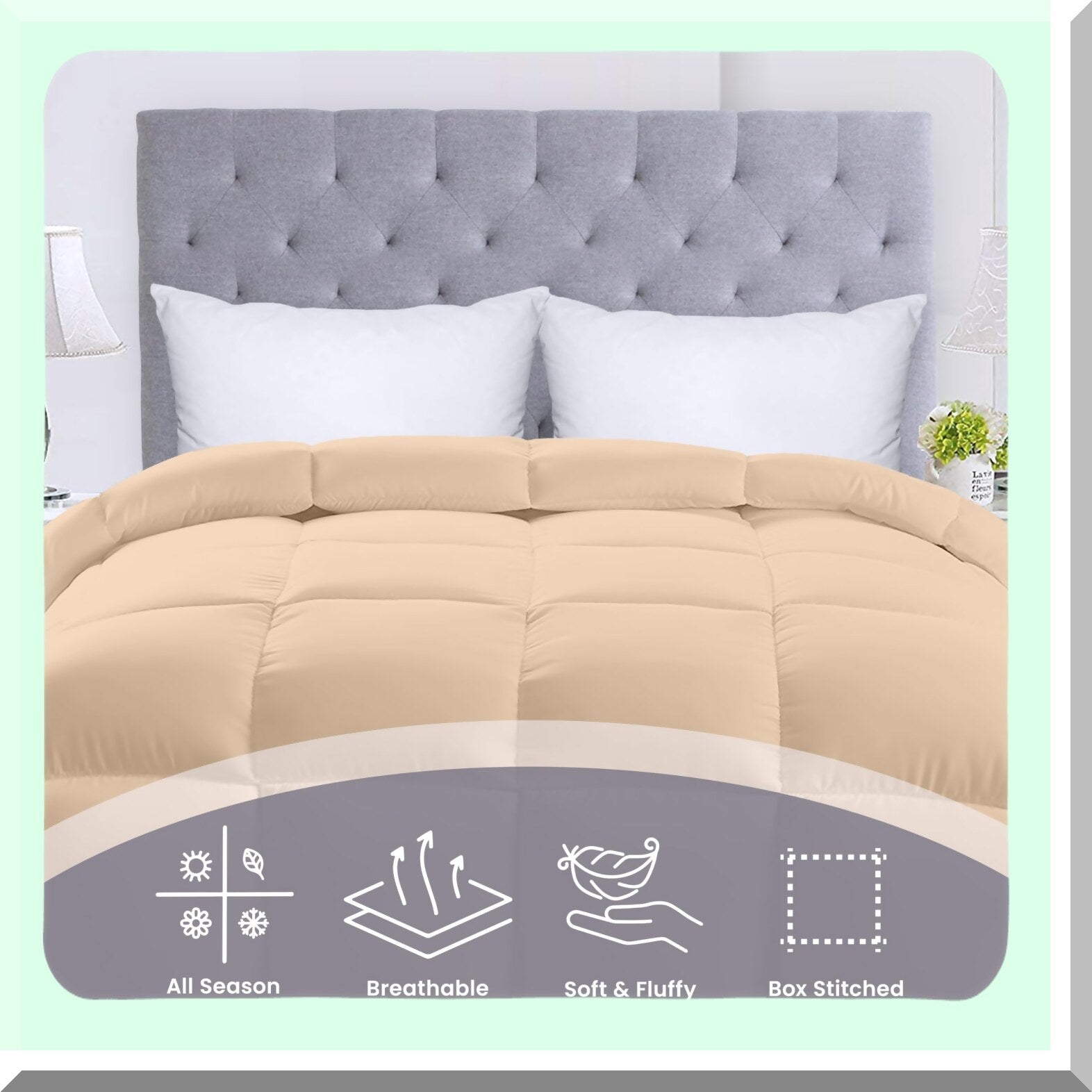 Luxury Plush All Season Comforter - Queen Size 250 GSM Box Stitched Beige Bedding Set - Hypoallergenic Siliconized Fiberfill Duvet