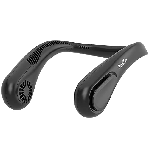 Bladeless Neck Fan 5000mAh, Necklace Fan Battery Operated 4 speeds, Wearable Fan Rechargeable Strong Airflow, Hands-Free Fan Portable, for Outdoor Activities Travel Office Home (Black)