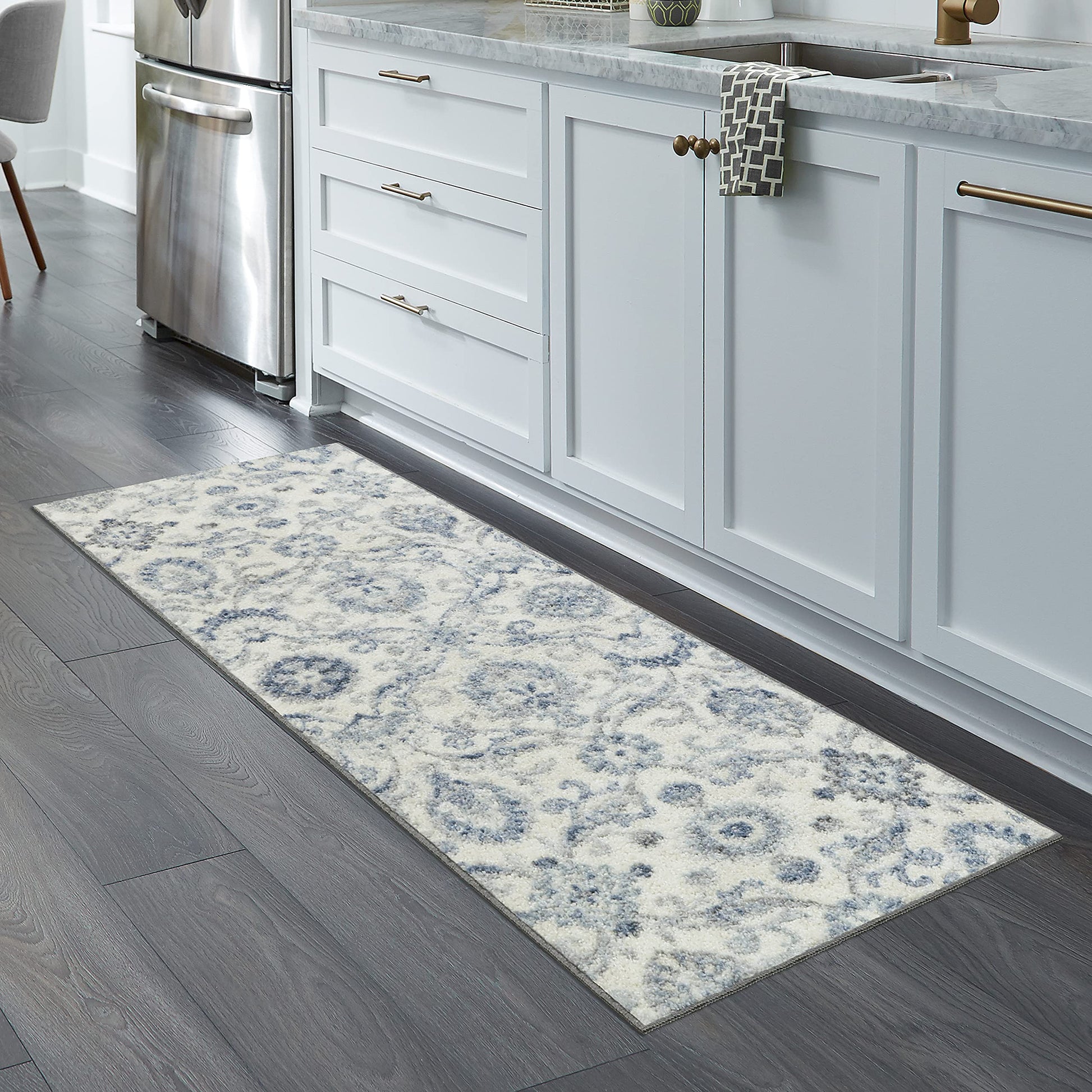 Blooming Damask Non Runner Rug For Hallway Entry Way Floor Carpet Made in USA], 2 x 6, Grey/Blue