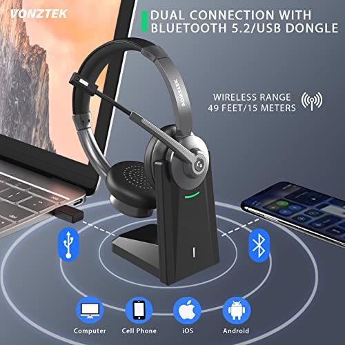 Bluetooth Headset with Microphone, Wireless Headset for Computer, On Ear Headphones with Mic Noise Cancelling/Mute/Charging Base/Plug & Play Dongle/Dual Connect, Hands Free for Zoom|Skype|Ms Teams