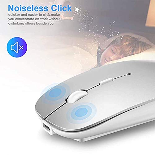 Bluetooth Mouse for Laptop/iPad/iPhone/Mac(iOS 13.1.2 and Above)/Android PC,Wireless Mouse Slim USB Rechargable Quiet Mice Compatible with Windows/Linux/Notebook/Mac/MacBook Air,Silver