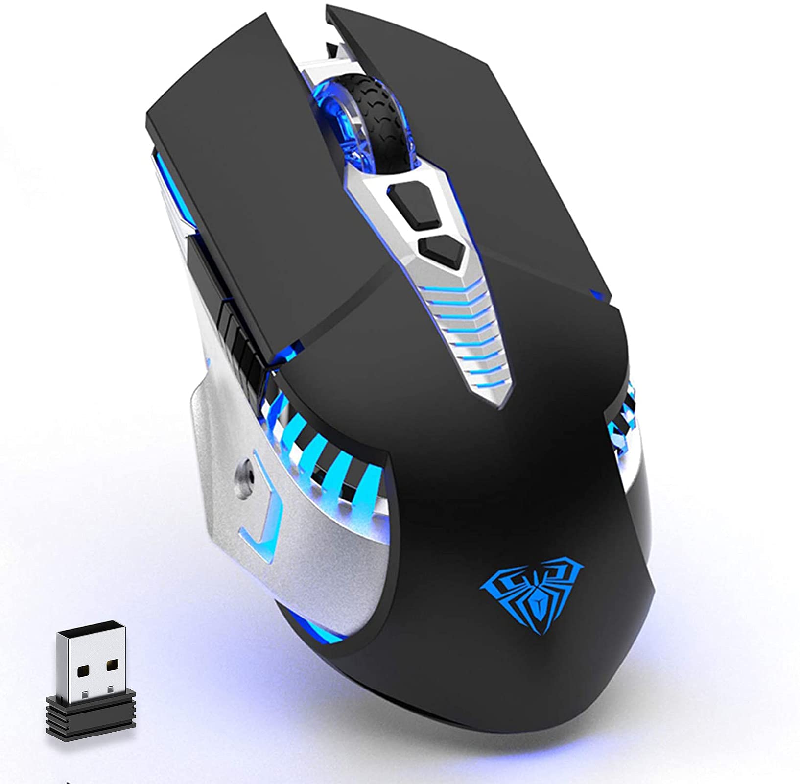 Bluetooth Mouse, Rechargeable Wireless Gaming Mouse Multi Device(BT 5.0/3.0+USB) with Side Buttons, RGB LED Light up Ergonomic Cordless Computer Mice for Laptop/PC/iPad/Mac/MacBook Pro/Tablet (Black)