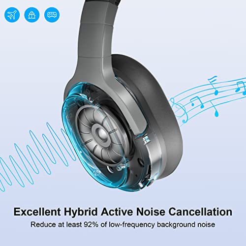 Bluetooth Over Ear ANC Headphones, Q1 Stereo Music Wireless Headphones with Built-in Mic, Foldable Lightweight Headset with Deep Bass, 30 Hours Playtime, for Travel Work Laptop PC Phone