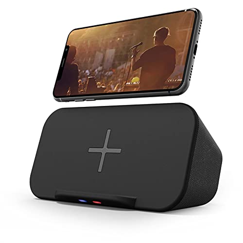 Bluetooth Speaker with Wireless Charger Stand, Premium Stereo Sound Speaker 18 Hours Playtime, 2 in 1 Home Audio Player Qi Charger Charging Compatible with iPhone, Samsung, Qi-Enabled Smartphones