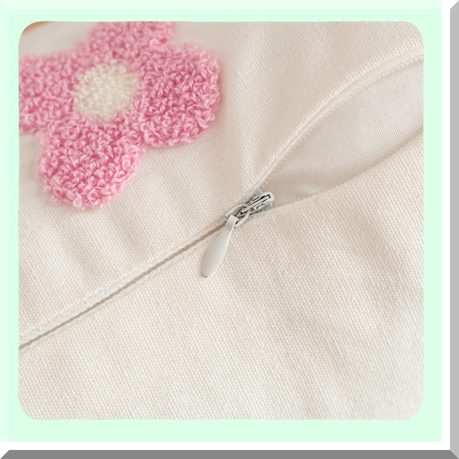 Sunflower Bloom Jacquard Pillowcase Set - Decorative Daisy Cushion Covers for Couch Sofa Bed, 18x18 Inch Square, Pink & White, Living Room Bedroom