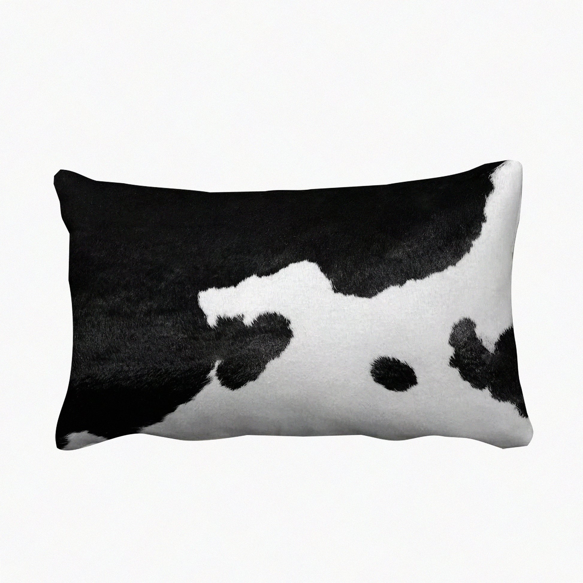 Cowhide Luxe Lumbar Pillow Cover - Western Southwestern Decorative Fluffy Leather Cushion Case for Outdoor Home, Black White Print, 12x20 Inch