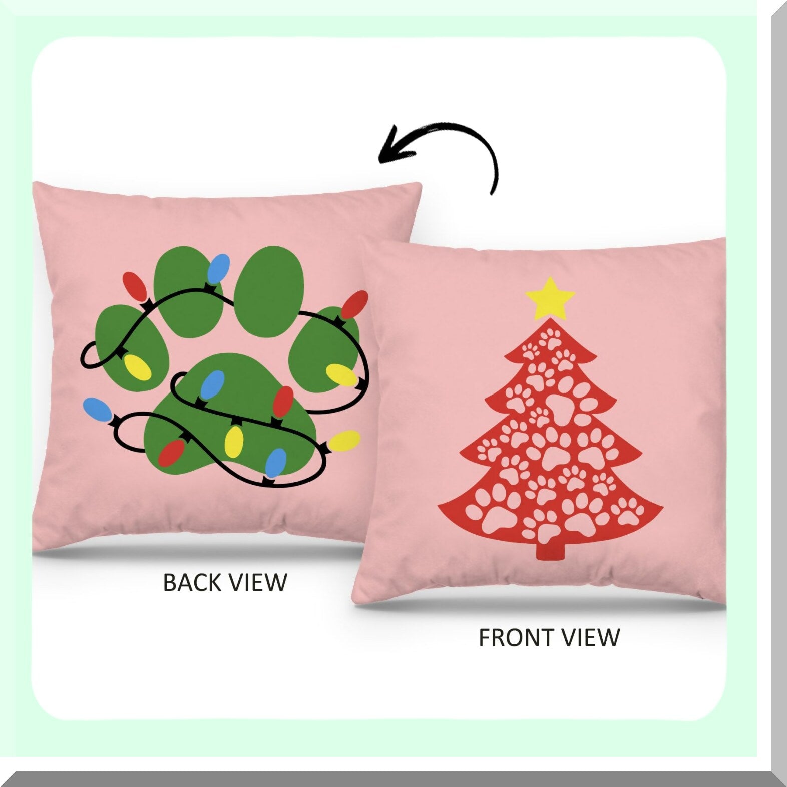 DoggyDream Reversible Pillow Covers - 18x18 Pink Decorations for Dog Room & Bedroom. Perfect Dog Lovers Gifts with Pink, Green, and Red accents.