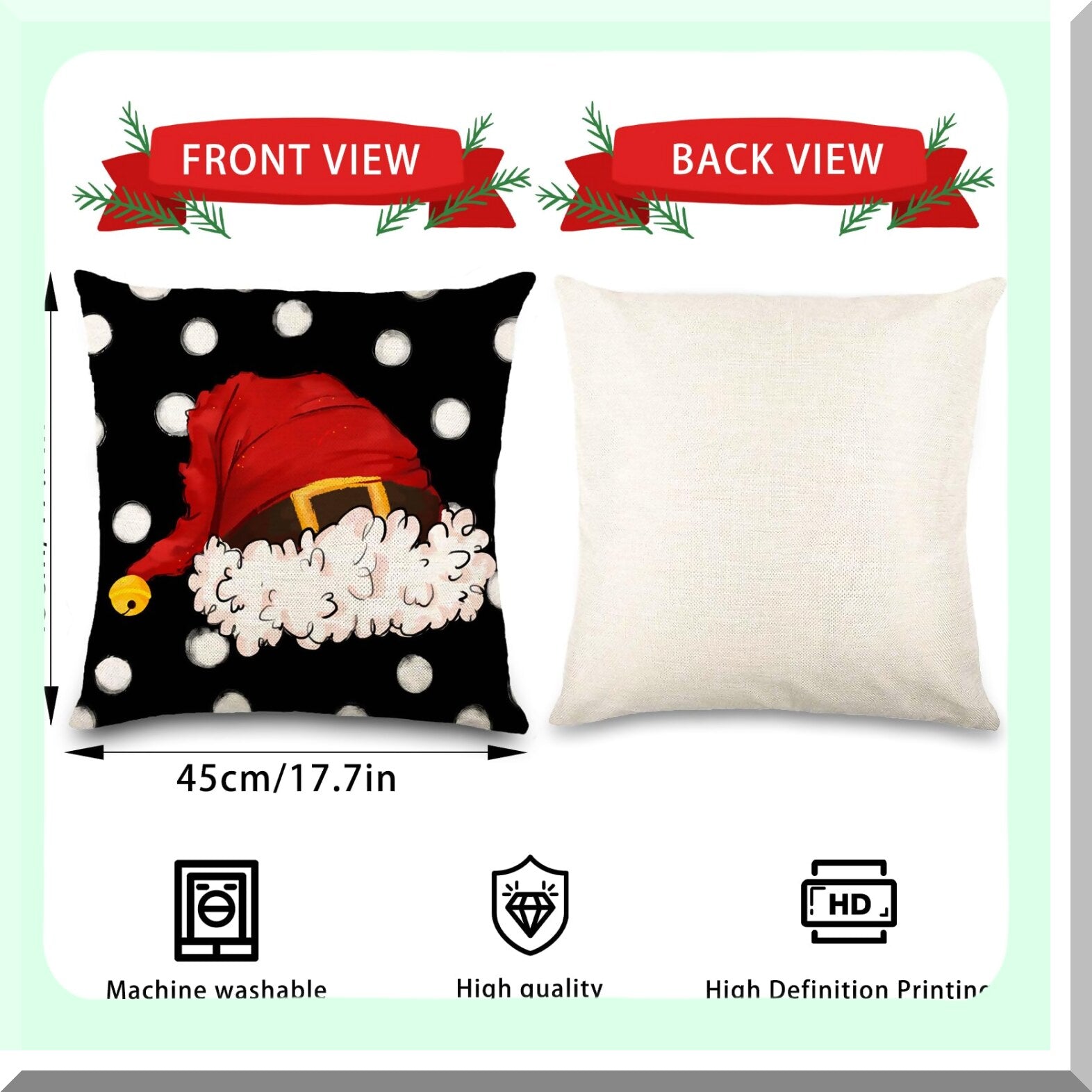 Winter Wonderland Pillow Covers - Set of 4, 18x18 inch, Merry Bright Xmas Tree Hat Black White Striped Dot Decorations, Couch Sofa Outdoor Indoor Home Décor