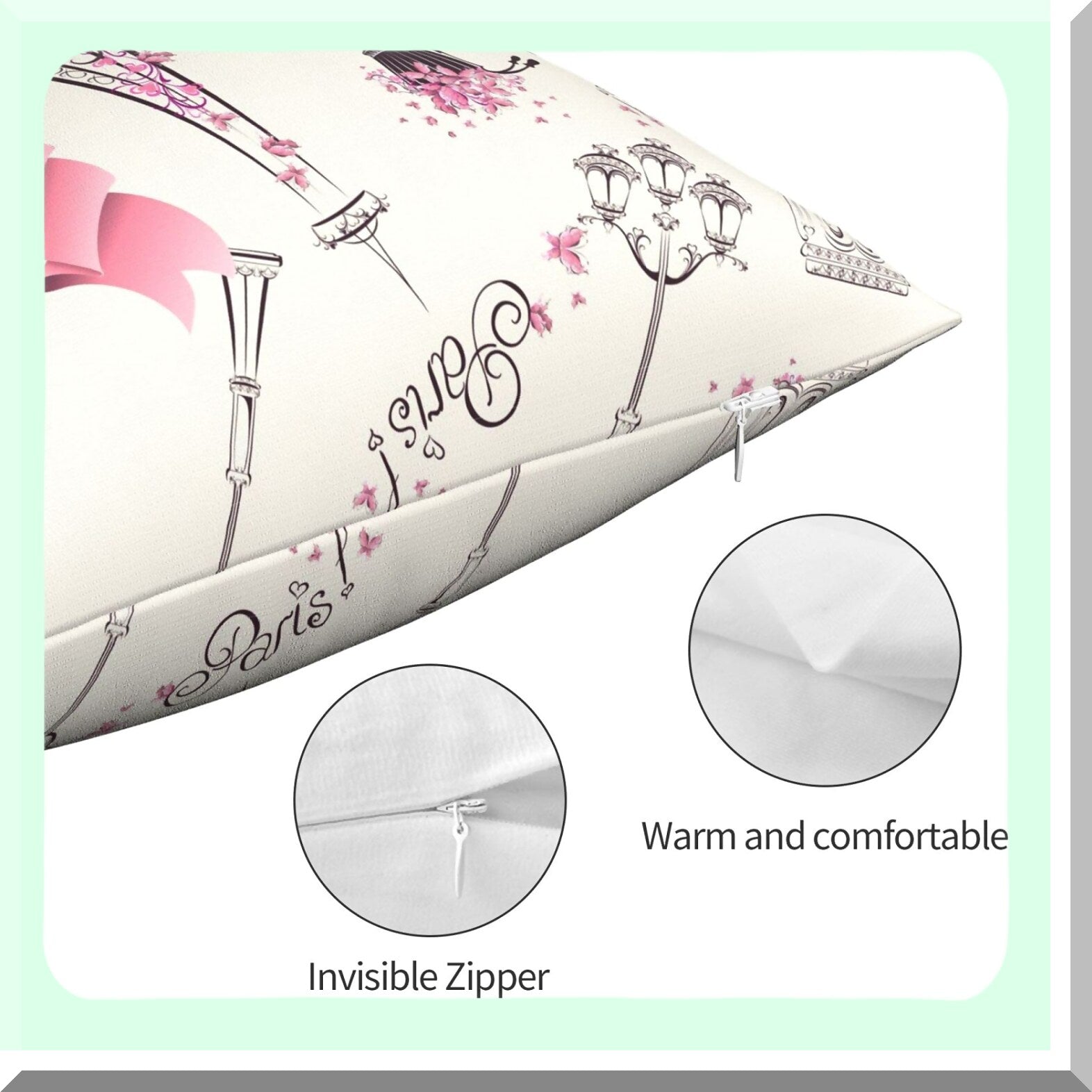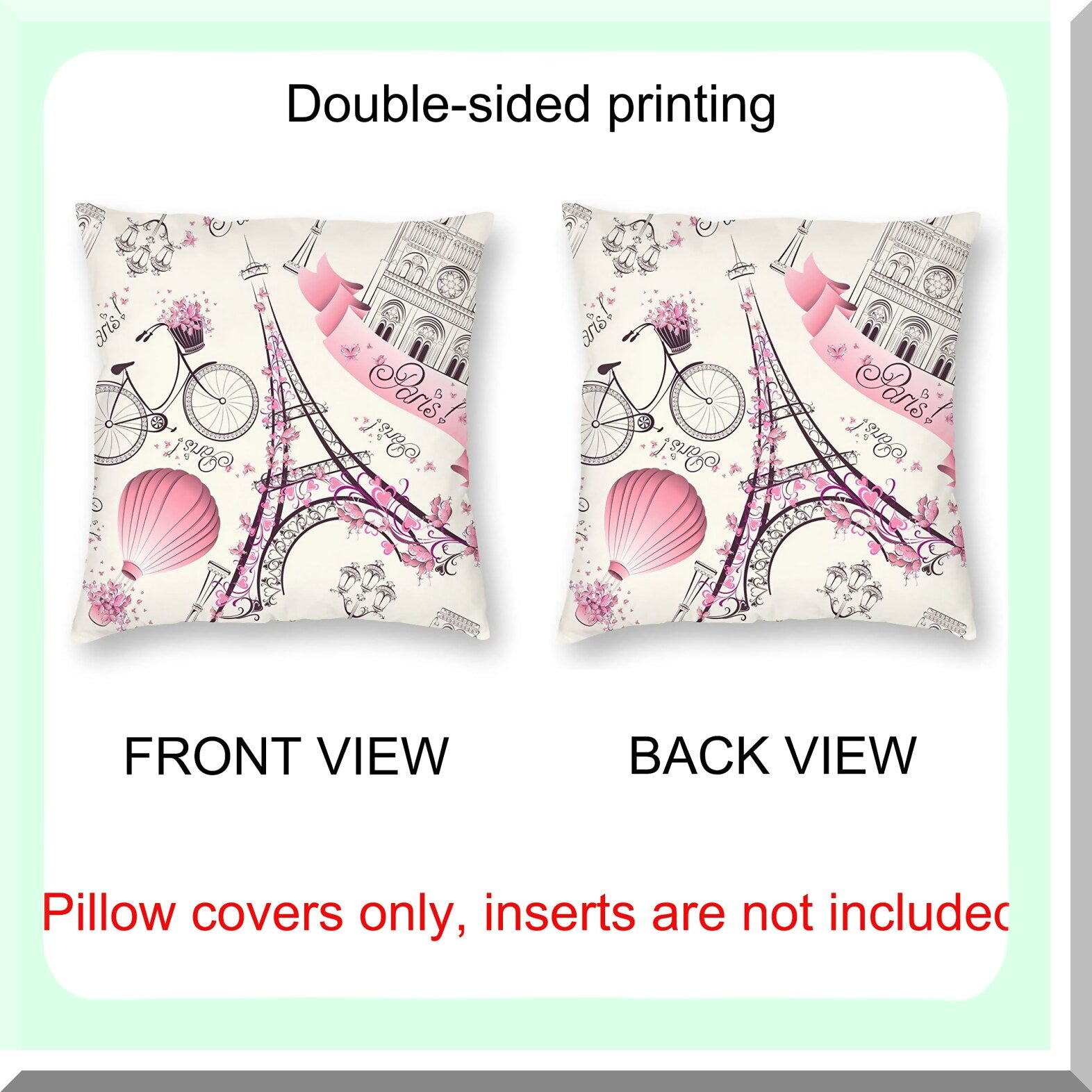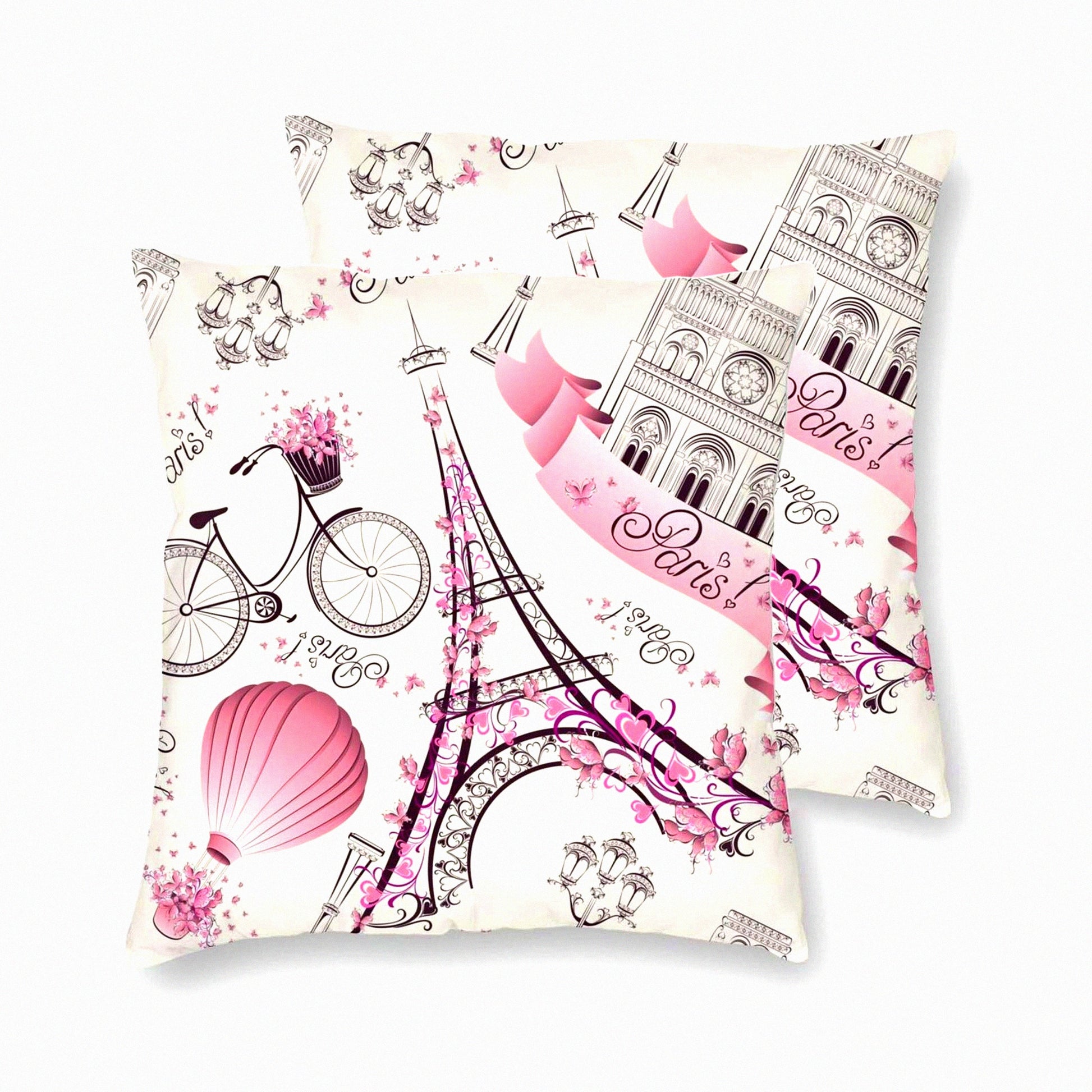 Eiffel Tower Parisian Chic Pillowcase Set - 2 Pack Decorative Throw Cushion Covers for Bedroom, Living Room, Sofa, Couch & Bed - 18x18 Inch French Travel Theme Home Decor