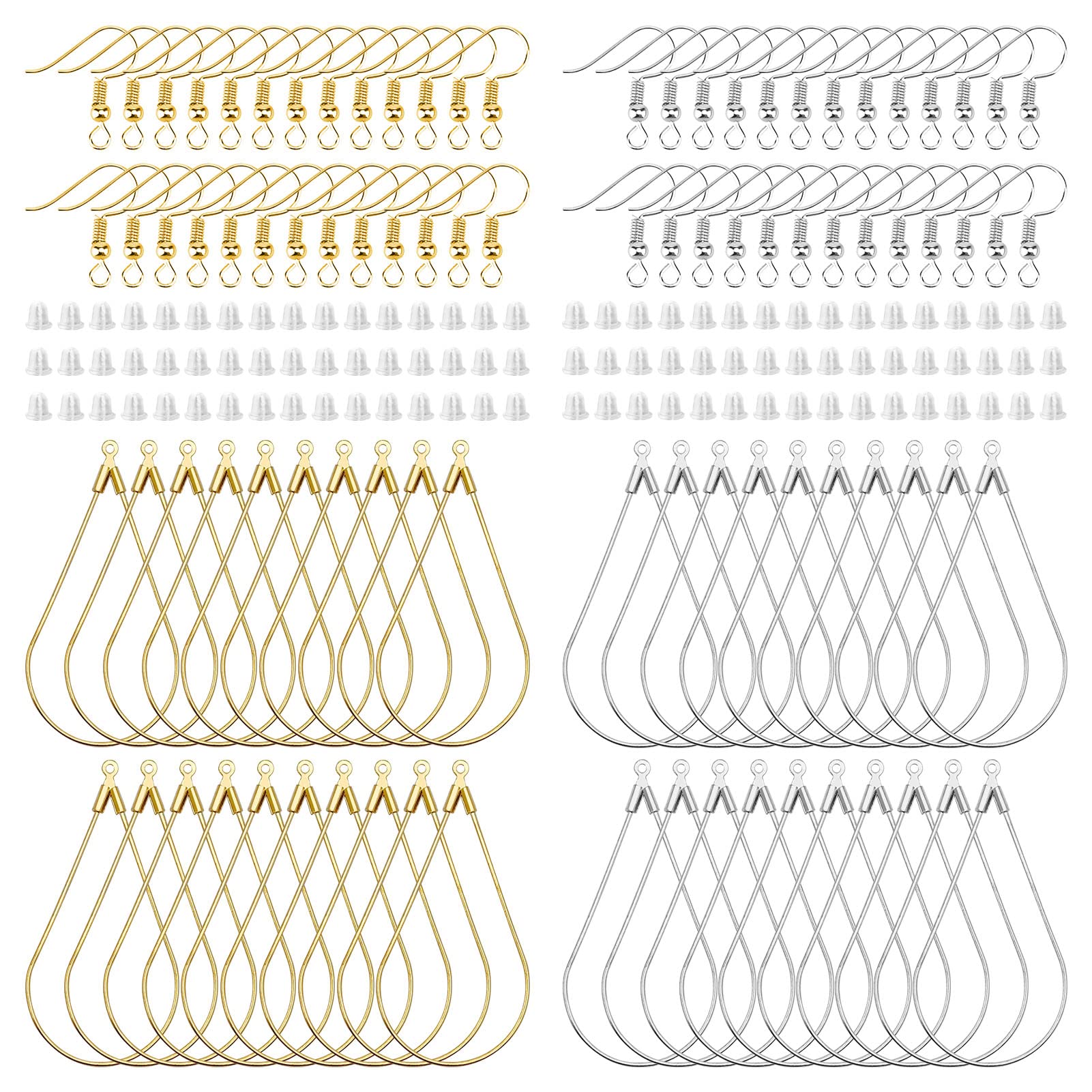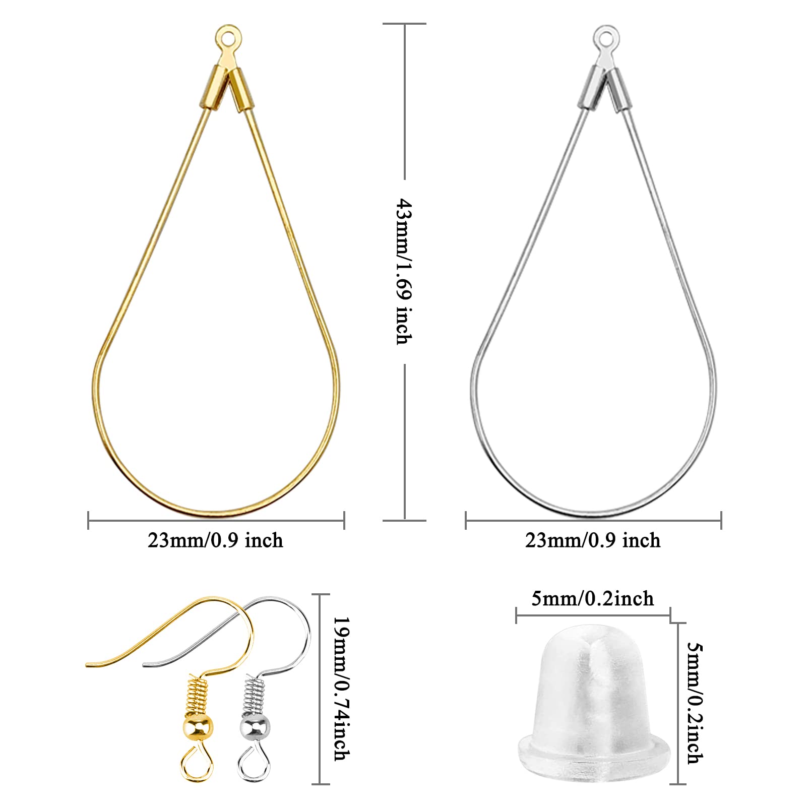 This DIY beading earrings kit includes 40 teardrop-shaped earrings in alloy with a gold and white finish. Each teardrop measures approximately 23mm by 43mm, with 19mm earring hooks included for easy assembly. The kit features 20 gold-tone and 20 white-tone teardrop earrings, along with 50 matching earring hooks in each color and 100 silicone earring backs. Made from durable, lightweight alloy, these earrings are resistant to tarnishing, rust, and warping, making them ideal for crafting personalized jewelry. The open design of the beading hoops allows for easy attachment of pendants or accessories, enabling customization for various styles. The elegant teardrop shape is suitable for different occasions, including parties, travel, and casual outings. Perfect for jewelry making enthusiasts, this kit provides ample supplies to create unique earrings that reflect your personal style.