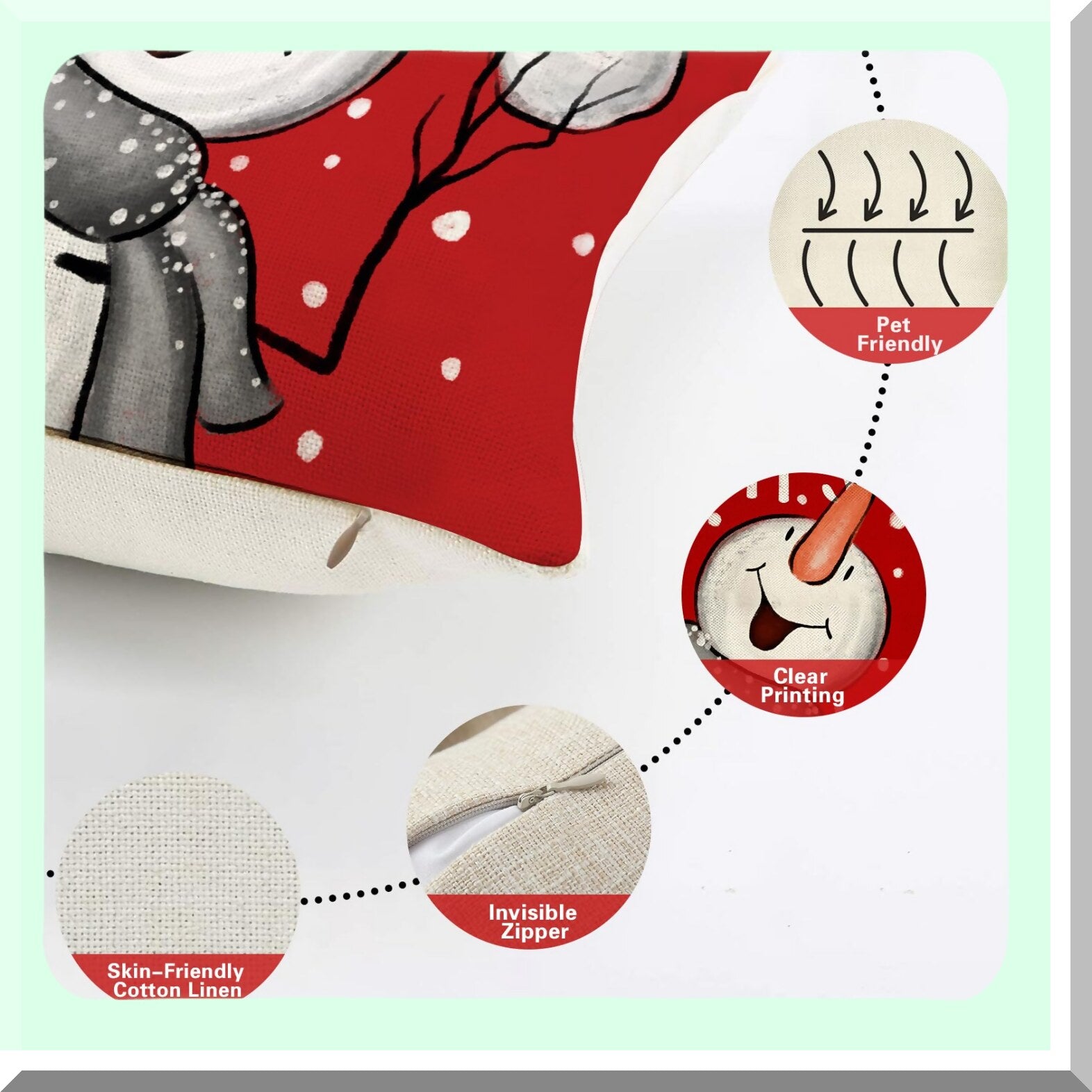 Winter Wonderland Holiday Pillow Cover Set - Snowman, Tree Ornaments, Holly Berries - 18x18 Red Cushion Case - Let It Snow Decor - Home Decoration Pillowcase Set of 4