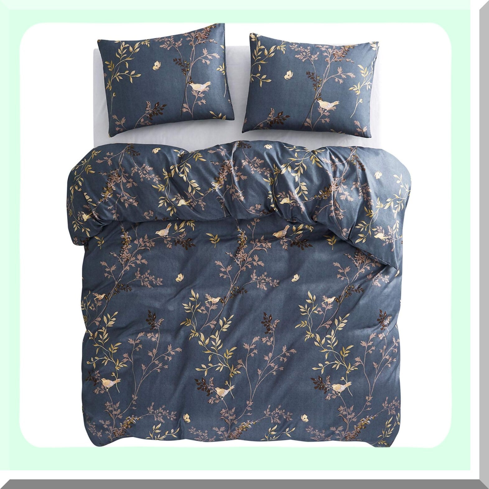 Floral Grey Feather Comforter Set - California King Size - Soft Microfiber Bedding with Birds and Leaves Pattern - 3 Piece Set
