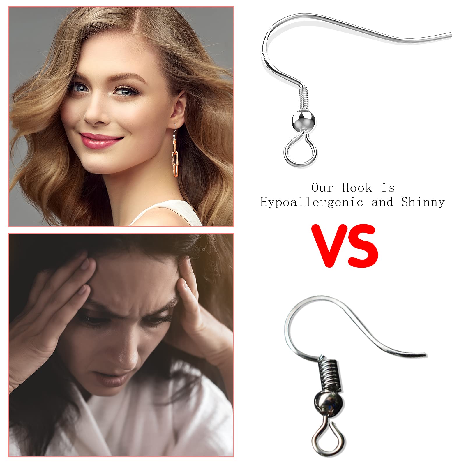This jewelry making kit includes 400 pieces of fish earring hooks and 200 rubber earring safety backs, providing ample supplies for creating custom earrings. The set features 200 pairs of 925 sterling silver earring hooks stamped for authenticity, paired with clear silicone safety backs that are pliable and comfortable to wear. Made from hypoallergenic materials, these earring hooks are safe for sensitive skin and designed for long-term use. Ideal for DIY jewelry projects, these supplies enable you to craft various earring styles using your favorite accessories. The fish hook design offers an elegant, curvy appearance that complements all face types and occasions, making them suitable for birthdays, holidays, and special events. The smooth surface of the hooks allows for easy insertion into ear holes, while the durable backs are simple to grasp and slide into place. Perfect for jewelry enthusiasts and gift-givers alike, this kit provides reliable components for creating beautiful, personalized earrings.