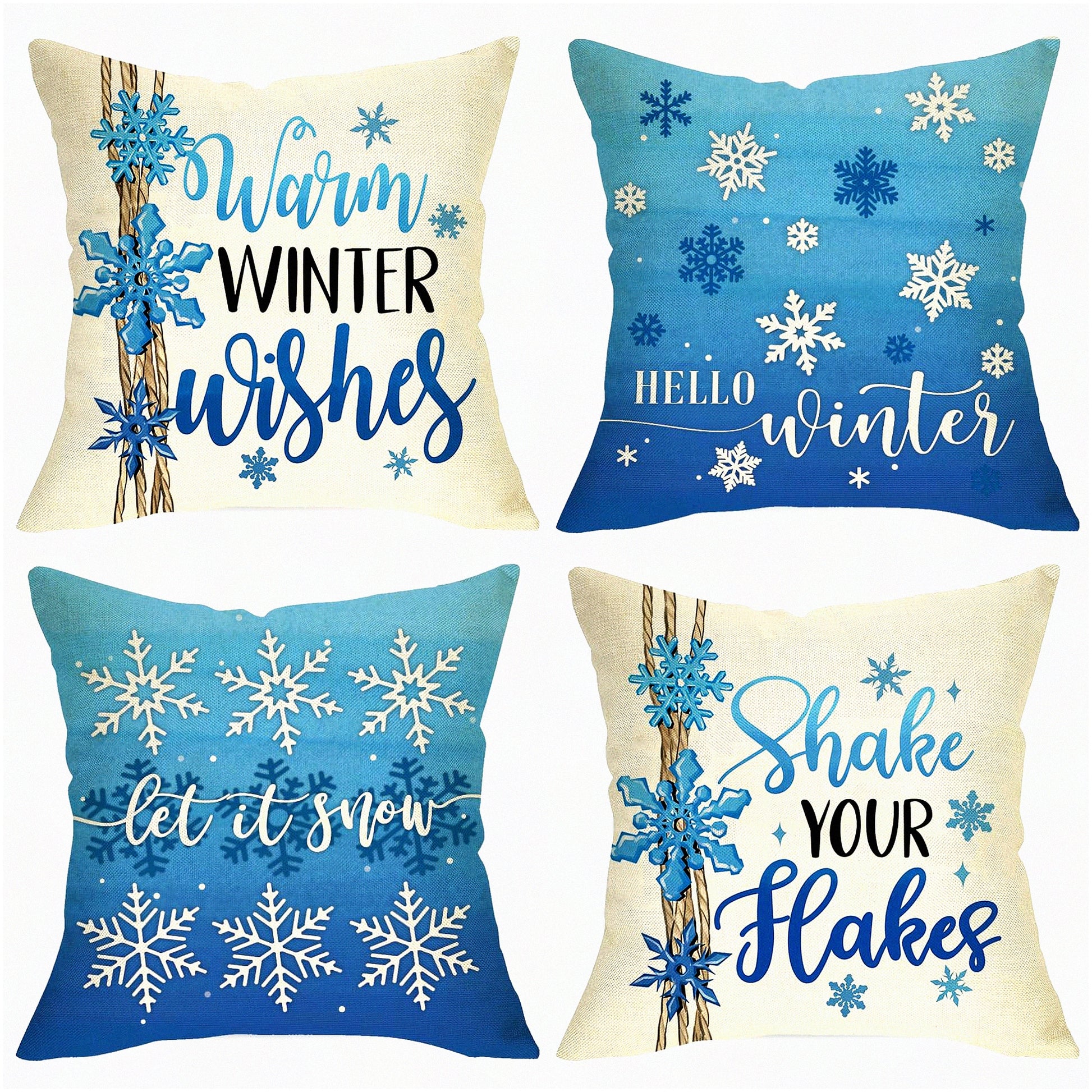 Winter Wonderland Snowflake Pillow Covers - Set of 4 | Shake Your Hakes Blue Cushion Cases | Let It Snow Holiday Decor - 18x18 | Seasonal Home Decoration - Warm Winter Wishes