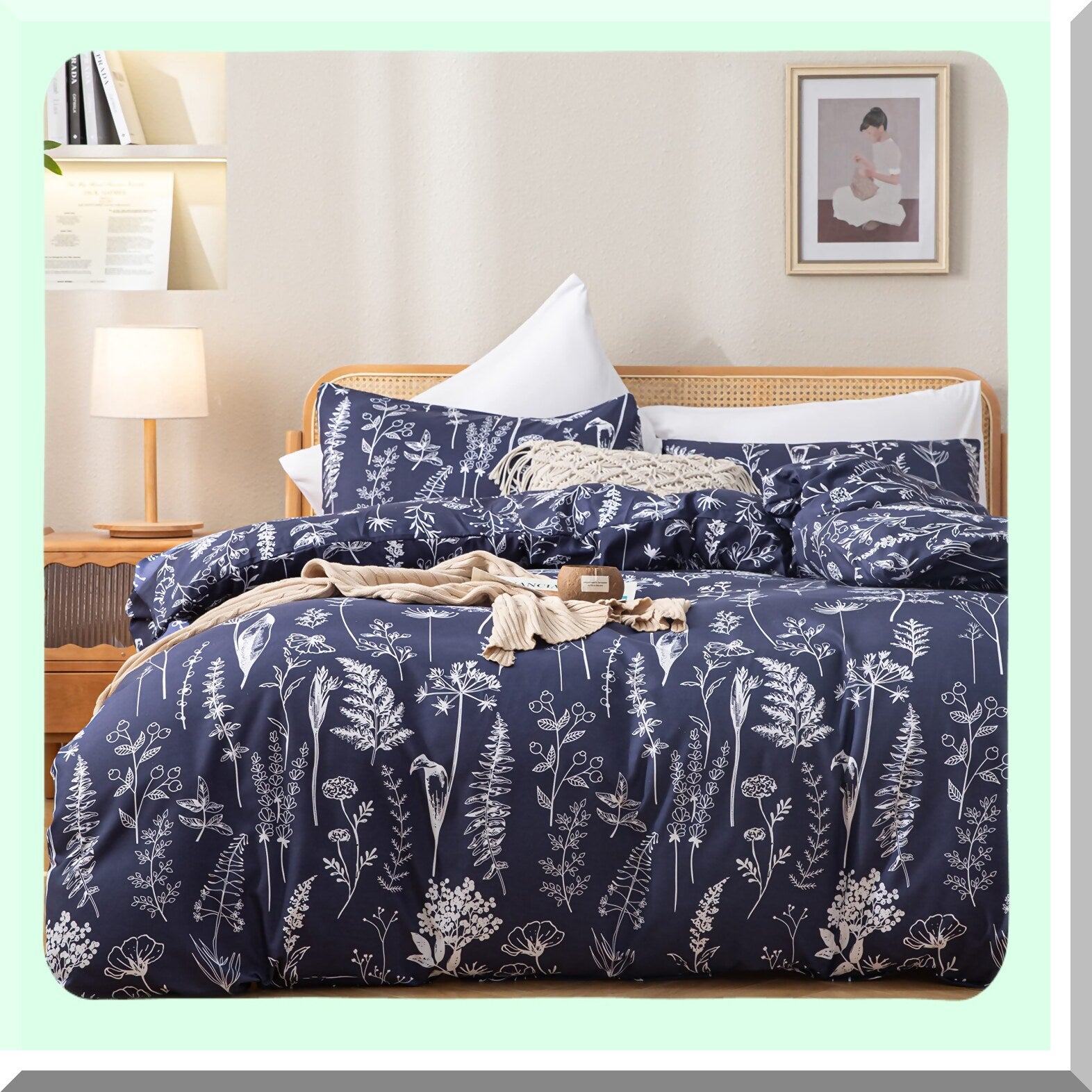 Navy Blue Floral Microfiber Comforter Set - Queen Size Bedding with 2 Pillow Cases | Soft All Seasons Comforter Sets