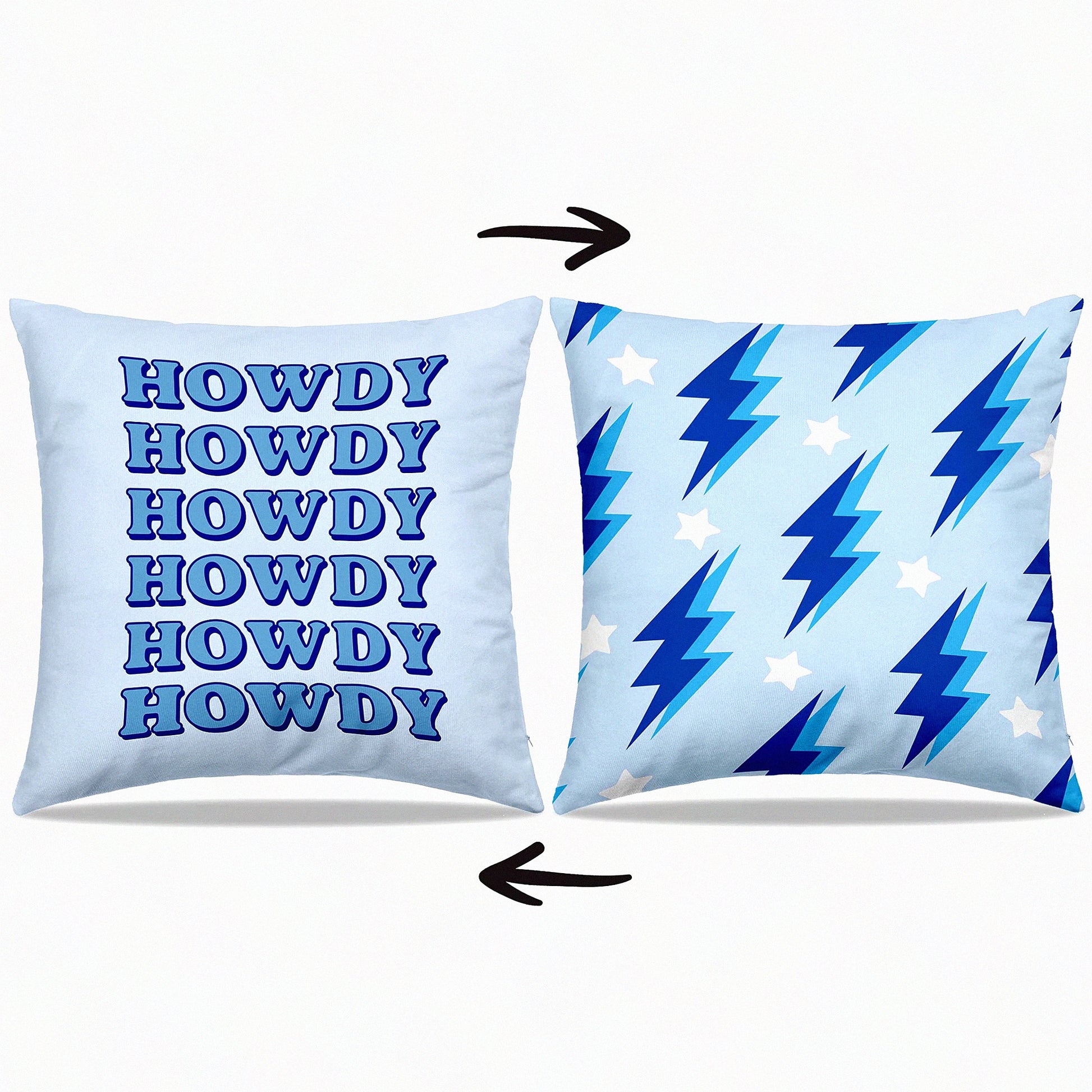 Lightning Stars Blue Reversible Throw Pillow Covers - Trendy Girls Room Decor 18x18 in - College Dorm Cushion Covers - Teen Girls Gifts - Howdy Blue Preppy