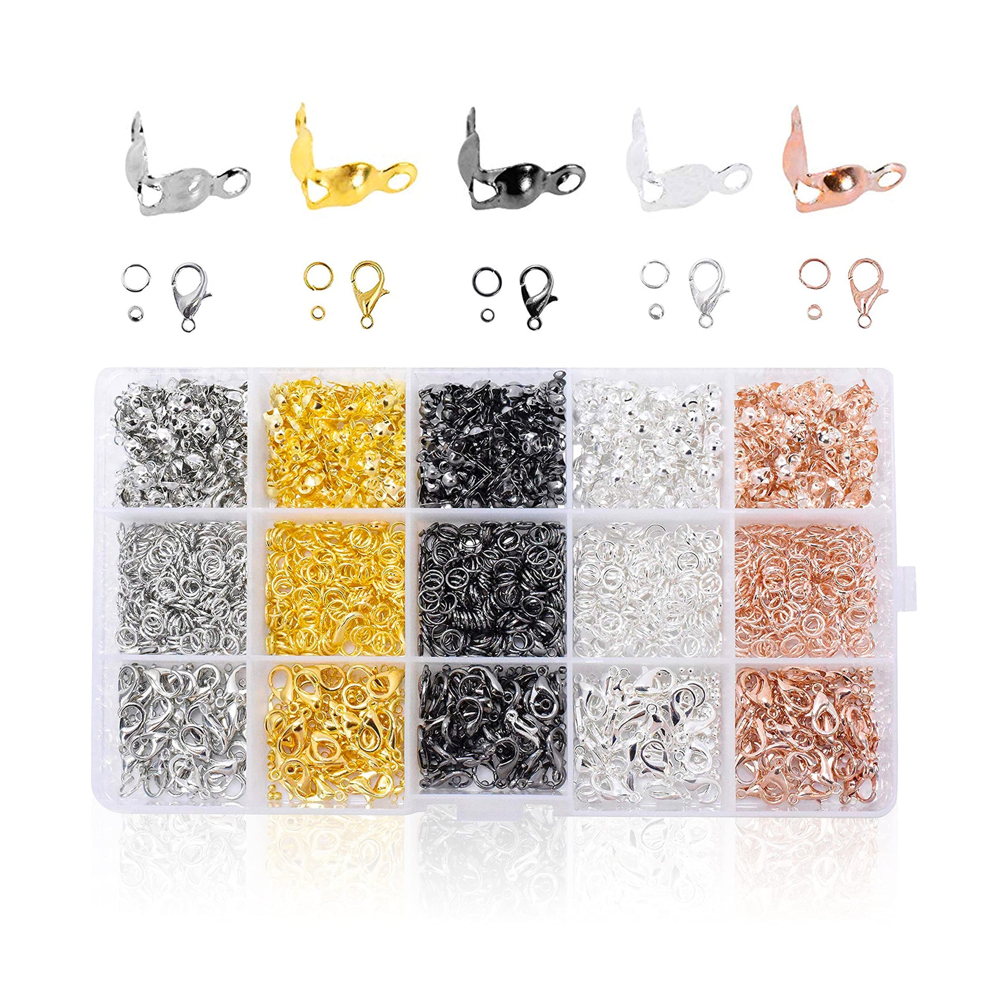 This crimp beads knot cover kit provides a professional and polished finish for jewelry pieces by concealing knots and crimp beads. The clam shell crimp covers are easy to install, requiring simply threading the cord through the middle hole, tying a knot, and pressing the two halves together with pliers. These findings are compatible with various jewelry cords such as wire, silk, leather, linen, nylon, and cotton, making them versatile for necklaces, bracelets, earrings, charms, and anklets. Made from durable, rust- and tarnish-resistant alloy, they are lead and nickel-free, ensuring safety and longevity. The kit includes a large quantity of end caps, jump rings, lobster clasps, and crimp beads, suitable for multiple projects. Clam shell bead tips not only hide knots but also add a sleek, professional finish to jewelry closures. Ideal for DIY jewelry making, beading, and craft projects, these findings help create clean, secure, and attractive jewelry pieces.