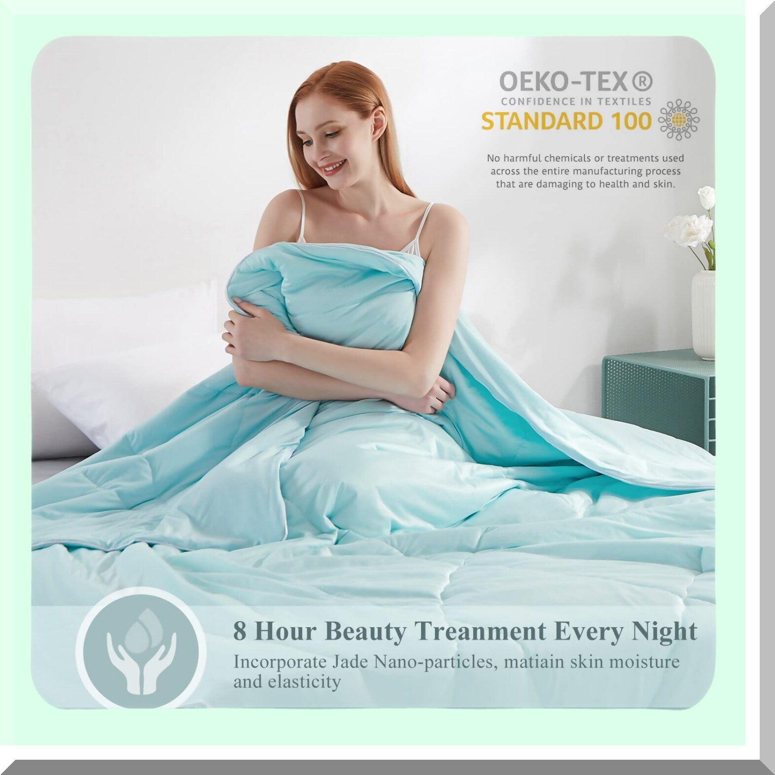 Experience uninterrupted sleep with our innovative cooling comforter, designed to keep you cool all night long, even during warm summer months. Utilizing Q-Max 0 technology, this comforter regulates your body temperature to ensure maximum comfort and restful sleep. Say goodbye to tossing and turning from overheating, and say hello to a refreshing and rejuvenating night's sleep every time you crawl into bed. Upgrade your sleep experience with our cooling comforter and wake up feeling refreshed and ready to take on the day.