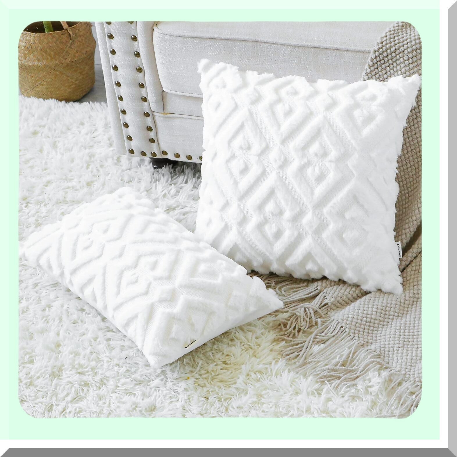 Luxury Plush Velvet Diamond Throw Pillow Covers - Set of 2 | European Style Cushion Covers for Sofa & Bedroom | Soft Short Wool Shell in Pure White - 28x28"