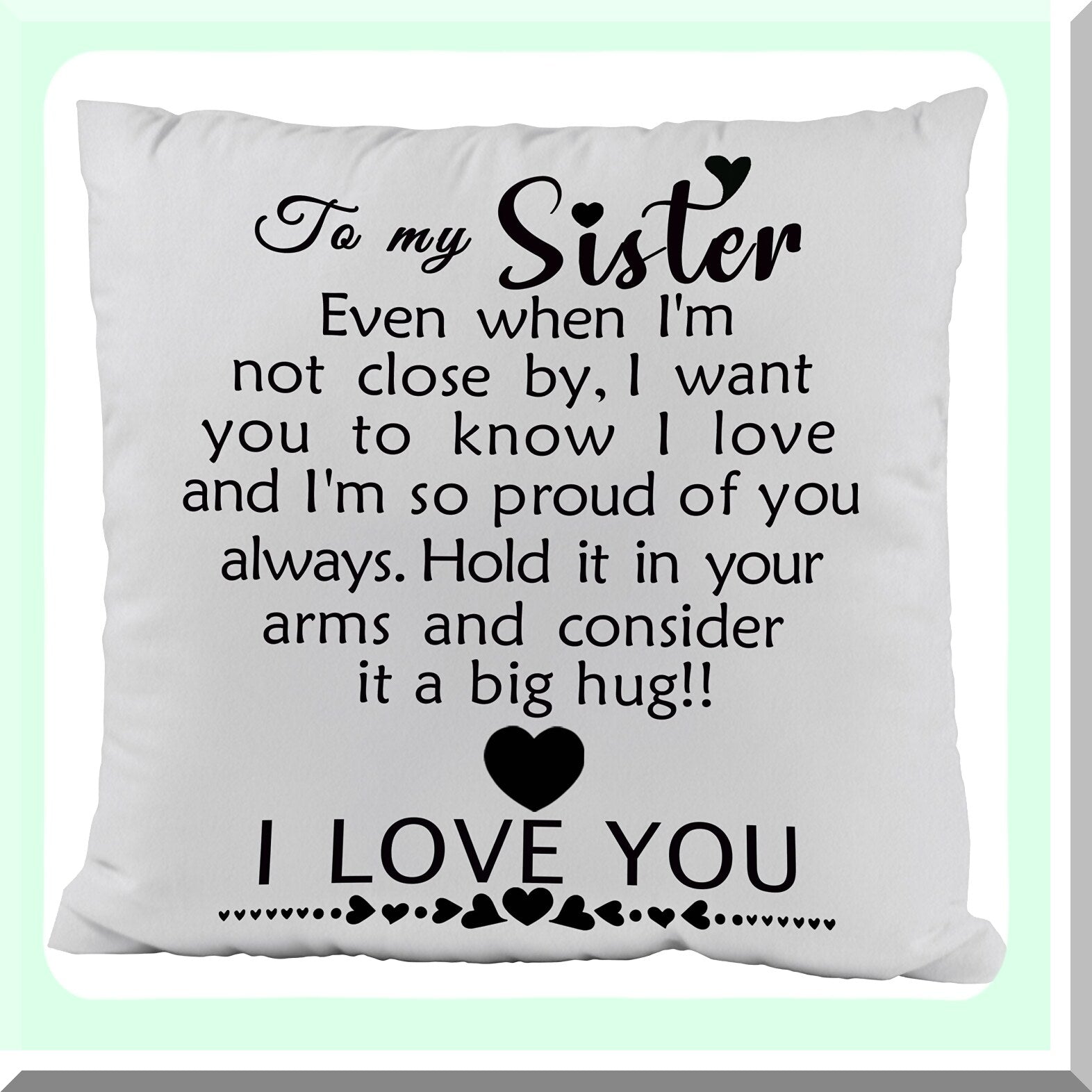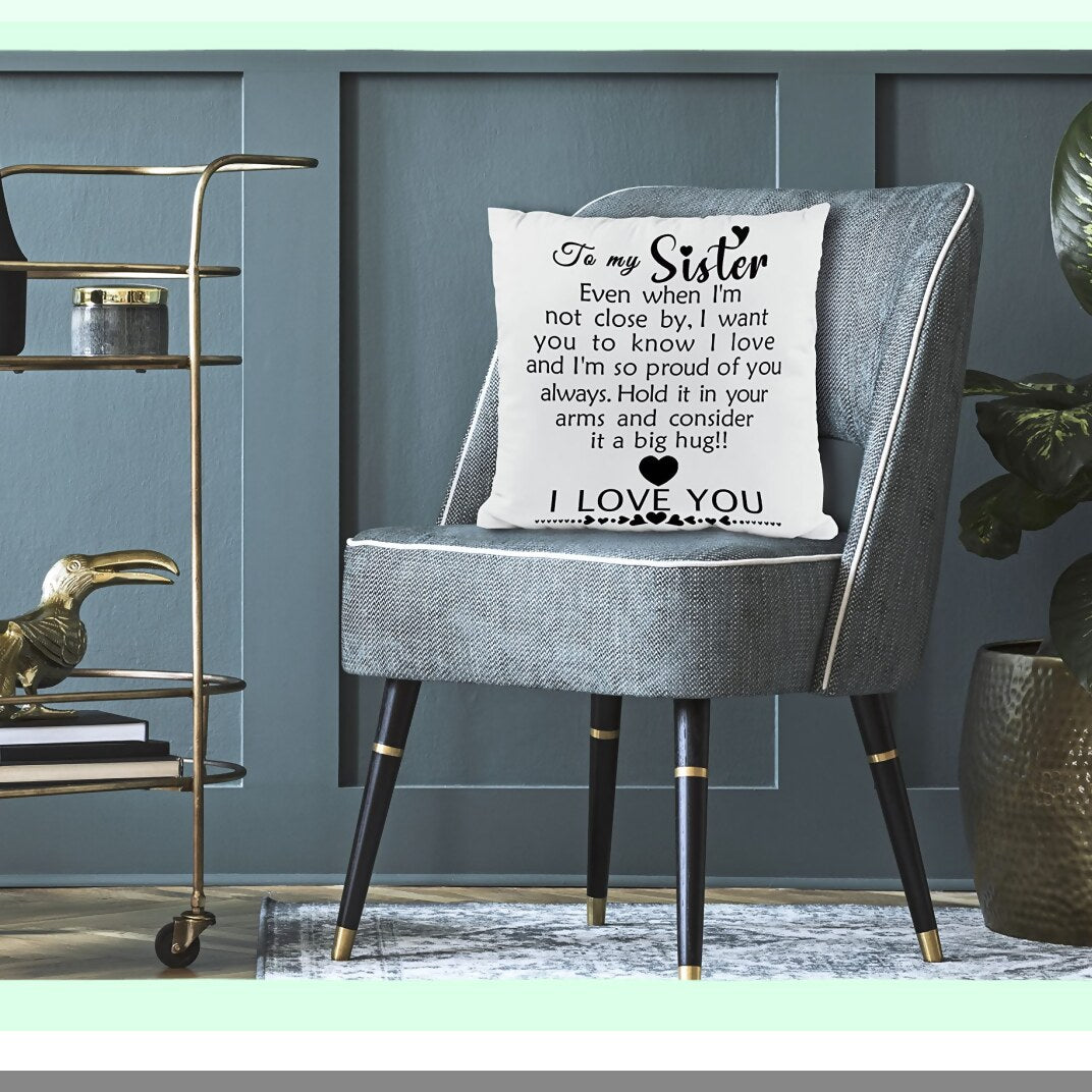 Sister Love Soft Throw Pillow - 18x18 Inch Cushion Cover for Sofa, Couch, Bed - Graduation, Birthday, Long Distance Gifts - Decorative Sister Gifts