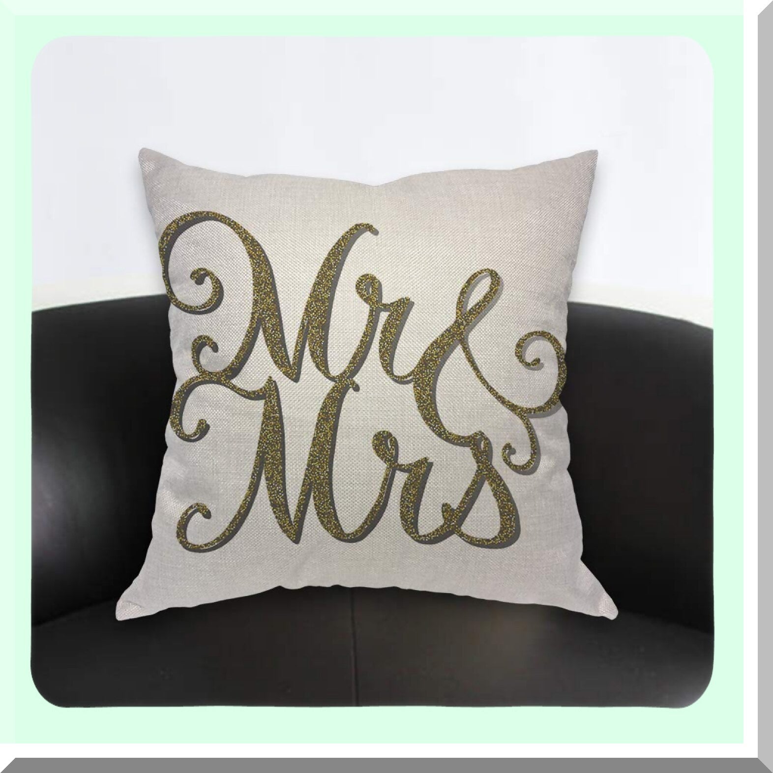Golden Luxe Wedding Letter Pillowcase - Artistic Font Decor for Home Couch Bed - 18x18 Inch Mr Mrs Throw Pillow Cover - Men Women Boy Girl Room Cushion Cover - Decorative Luxury Design