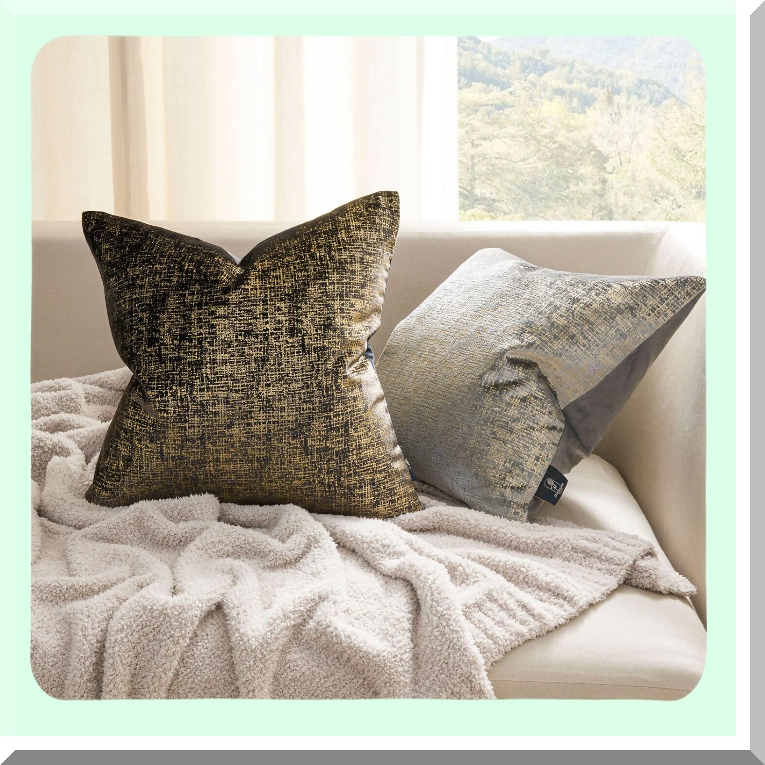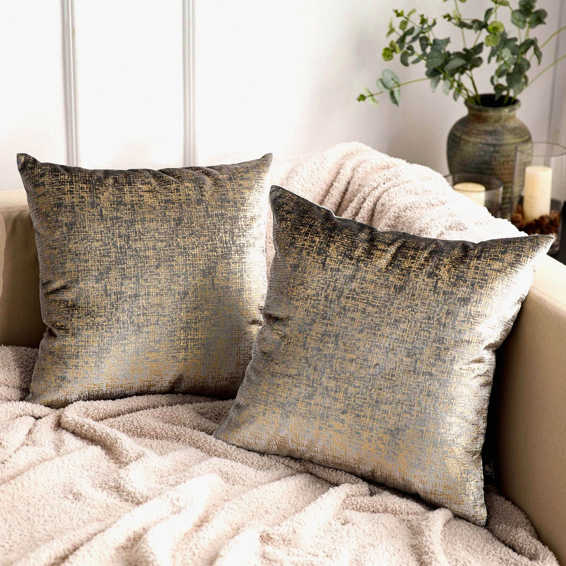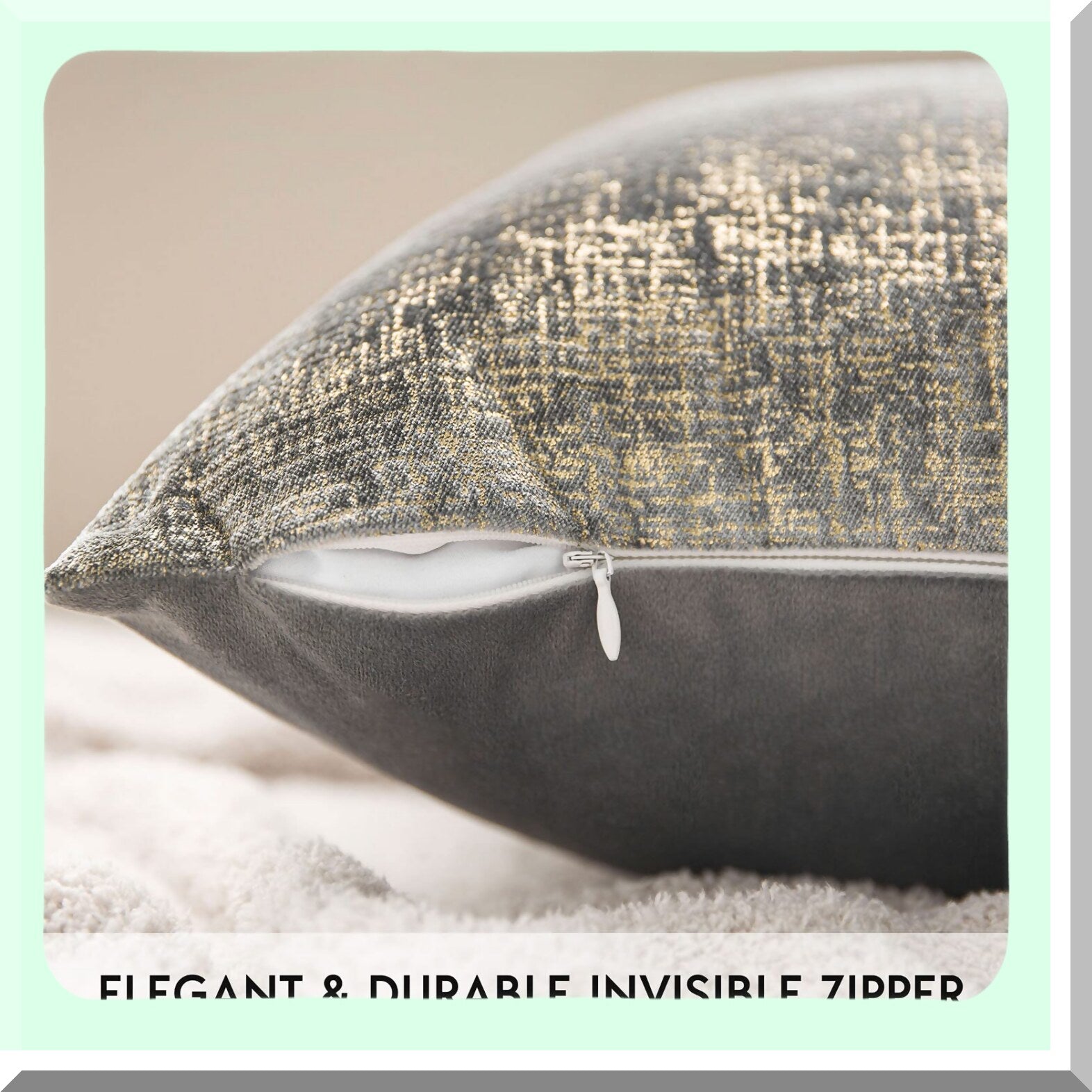 Gold Glitter Geometric Throw Pillow Cover Set - Sparkling Velvet Square Cushion Case for Couch, Bed, Chair - Decorative Grey Pillowcase 18x18"