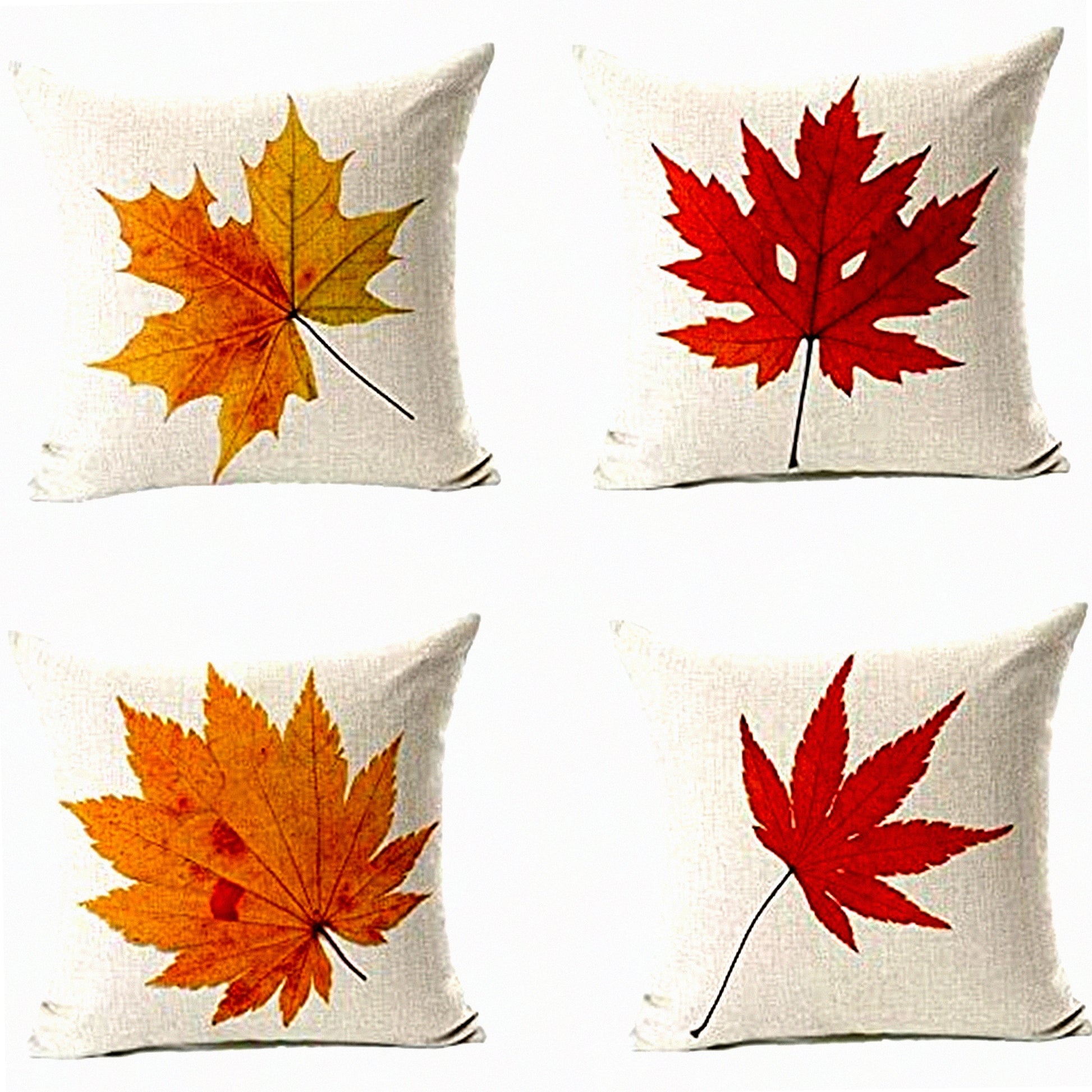 Autumn Harvest Maple Leaves Decorative Pillow Covers Set - Fall Thanksgiving Home Decor Cushion for Couch, Kitchen, Outdoor 16x16 Pack of 4