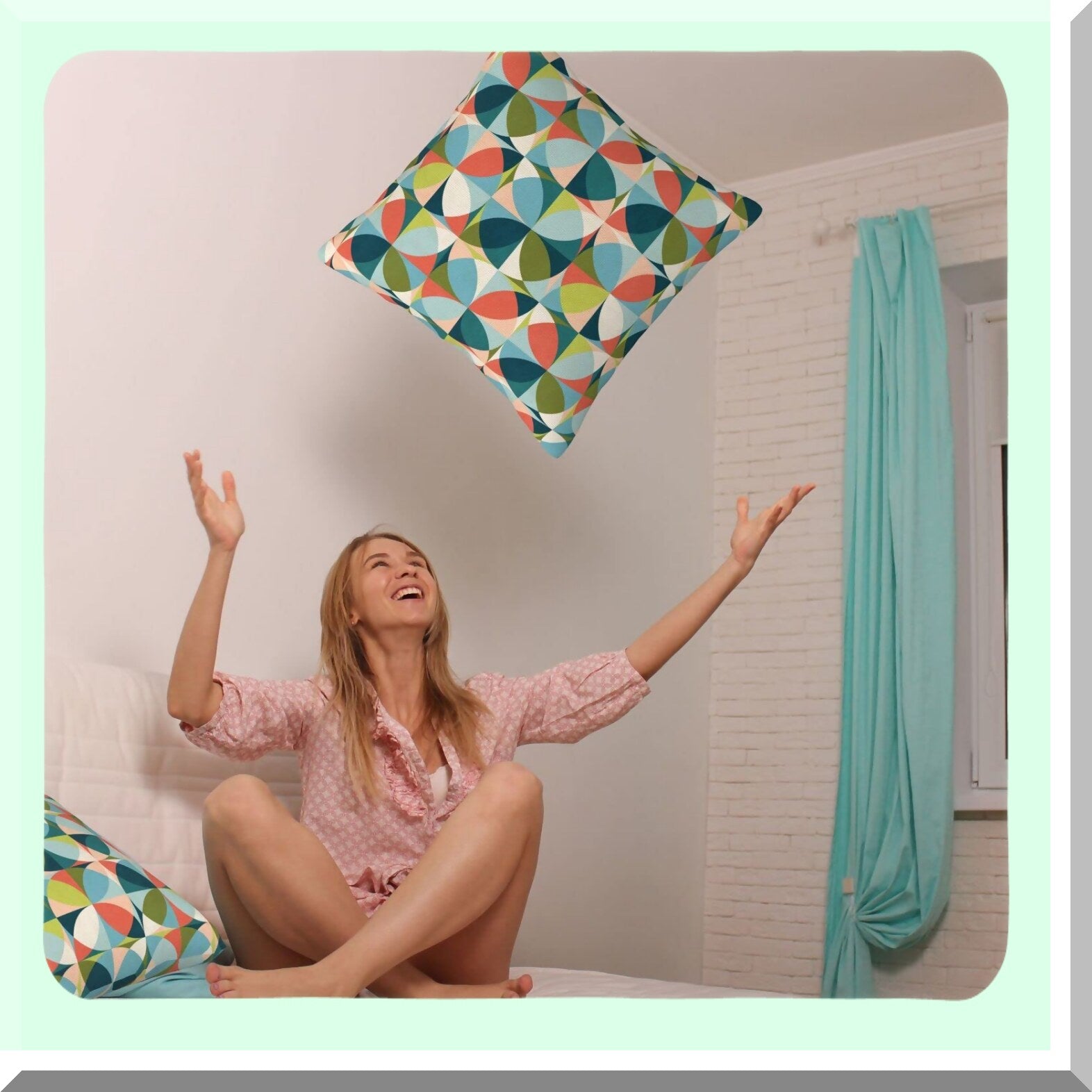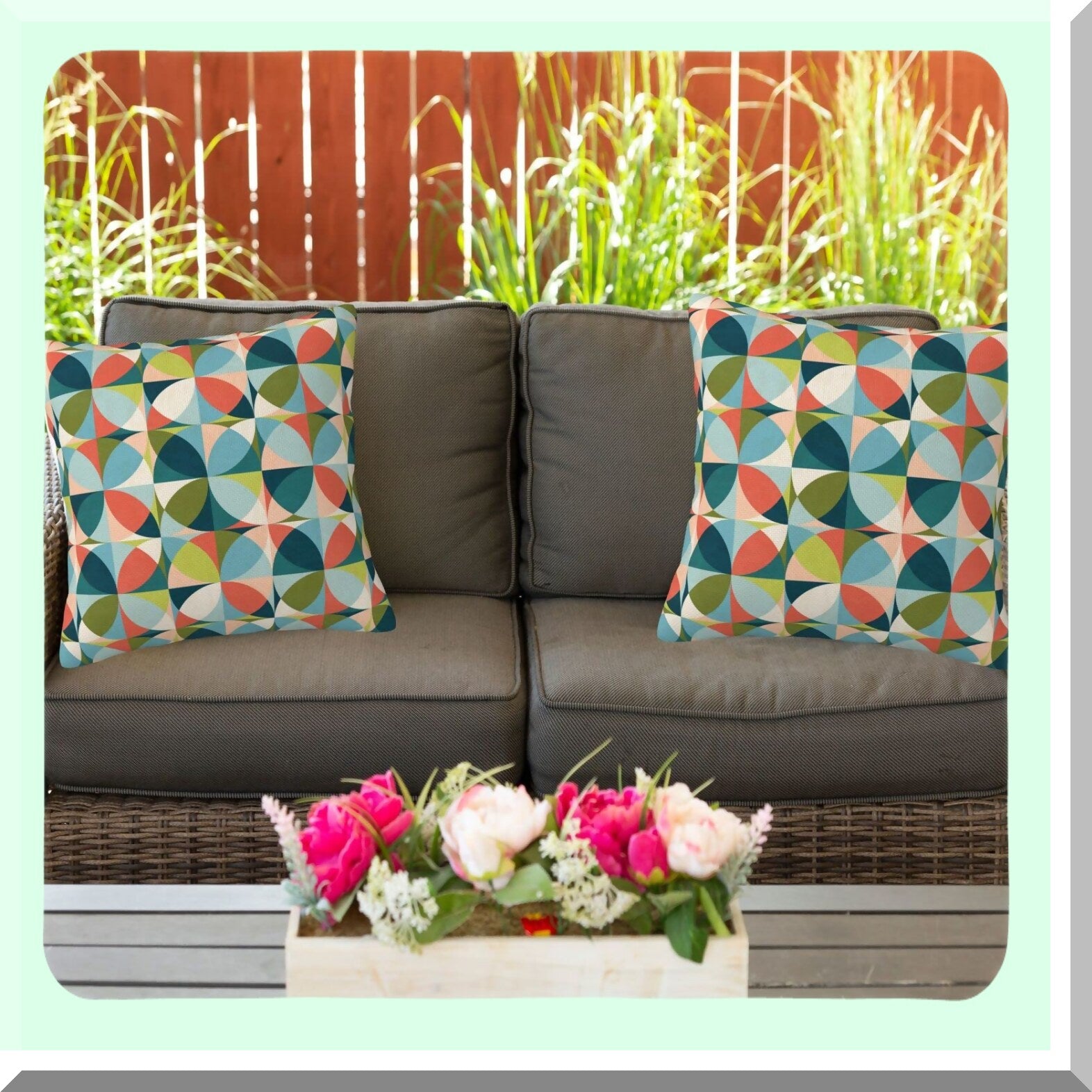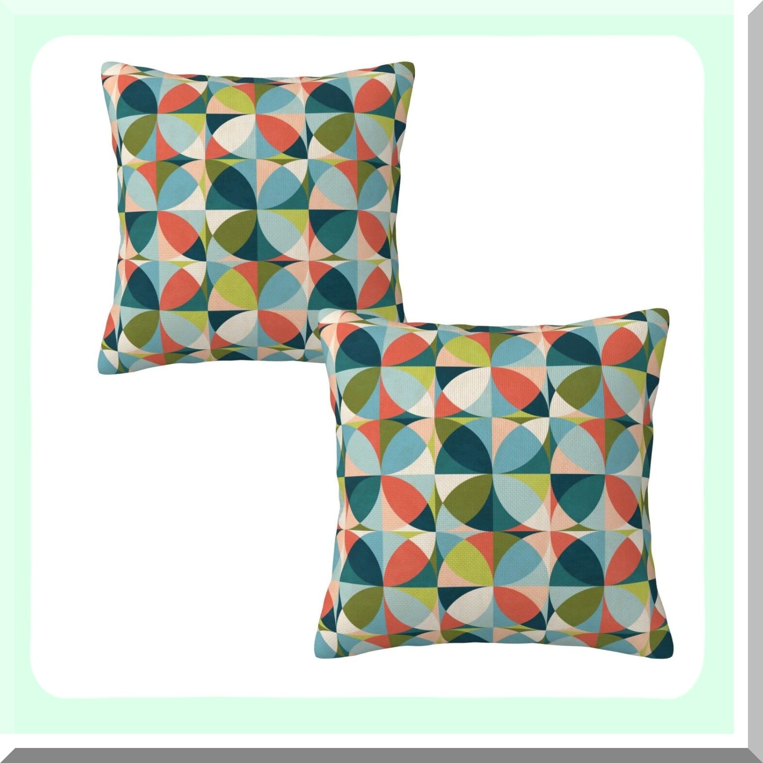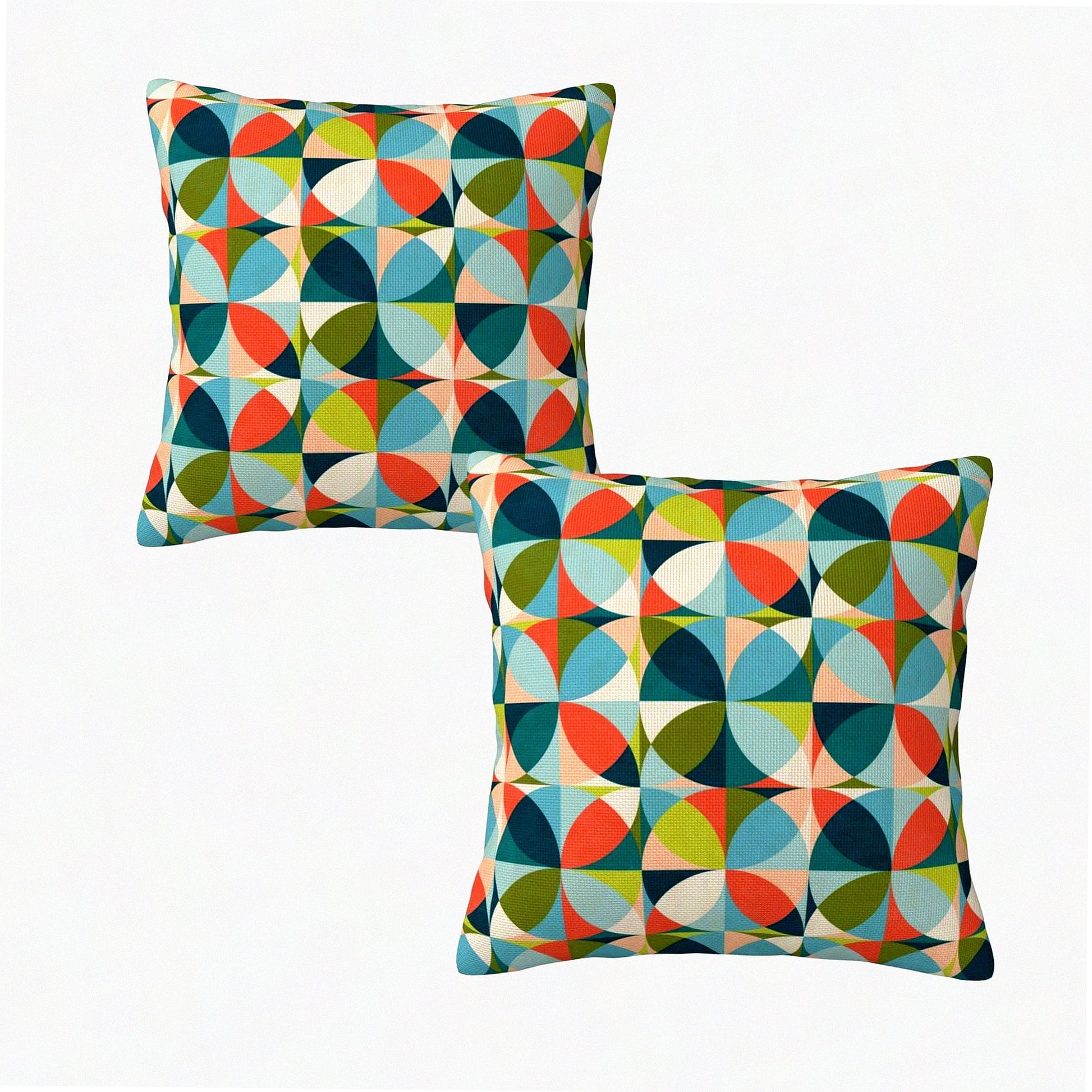 Mid Century Geometric Linen Pillow Covers - Set of 2 Decorative Throw Pillow Cases for Couch Sofa, Bedroom, Patio - Square Cushion Cover in Modern Colors - 18x18 Inch