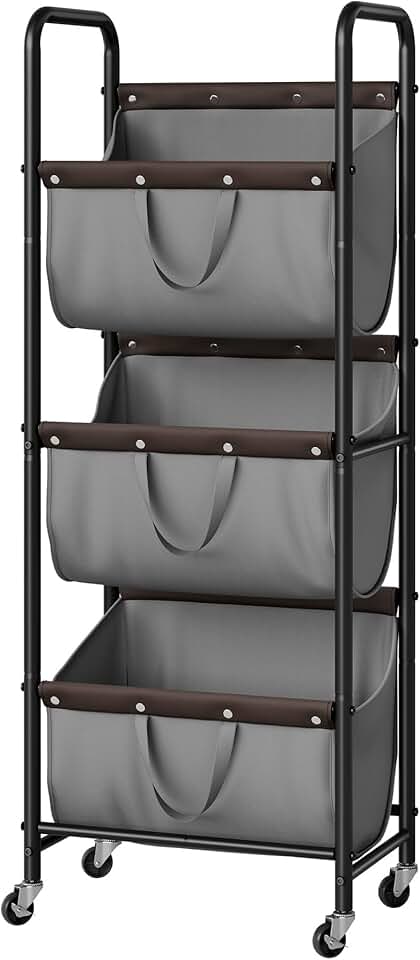 3-Section Rolling Laundry Basket for Storage
