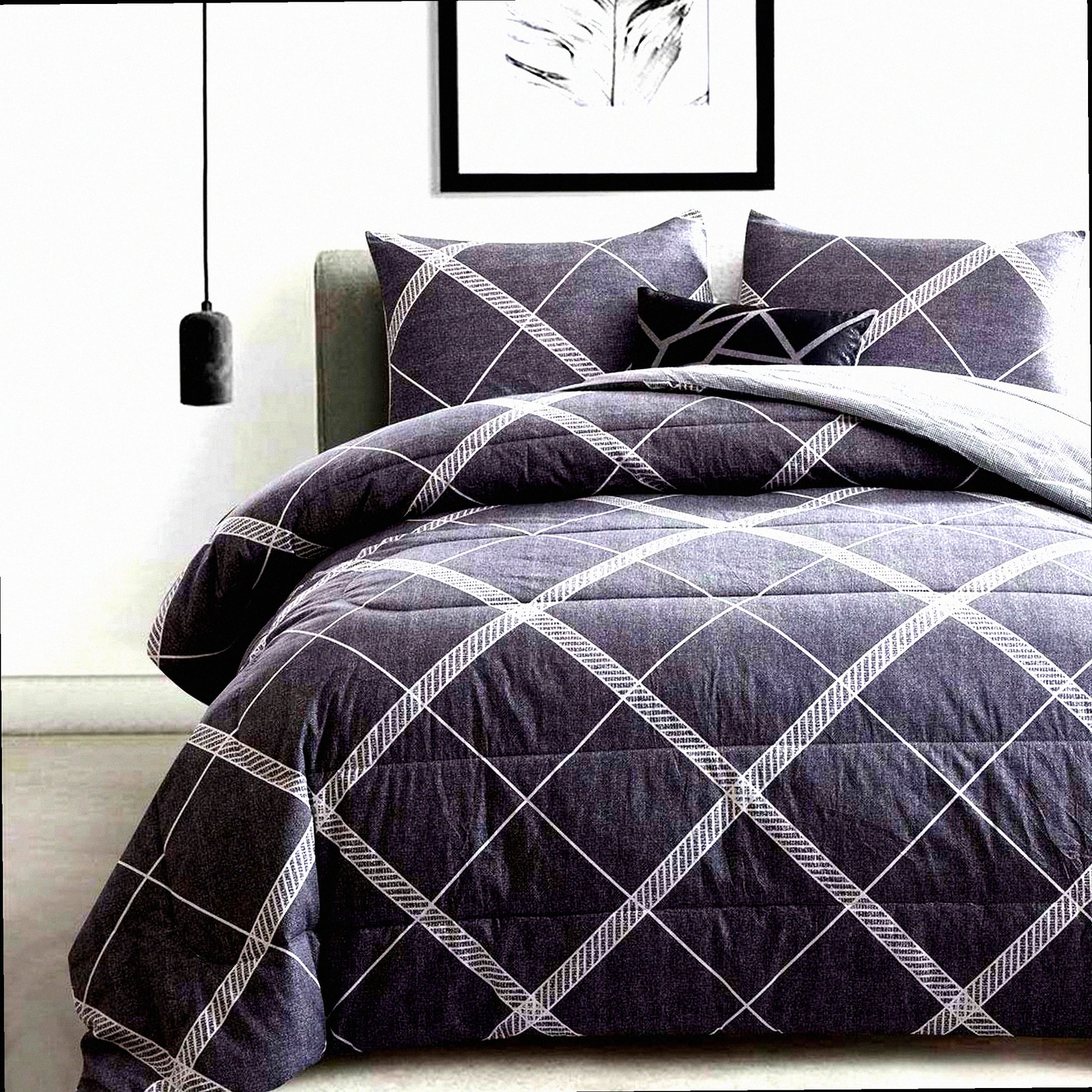 CozyCotton All Season Queen Comforter Set - Soft Microfiber Filled Bedding, Lightweight Reversible Duvet Insert in Grey & White - 3-Piece MY005