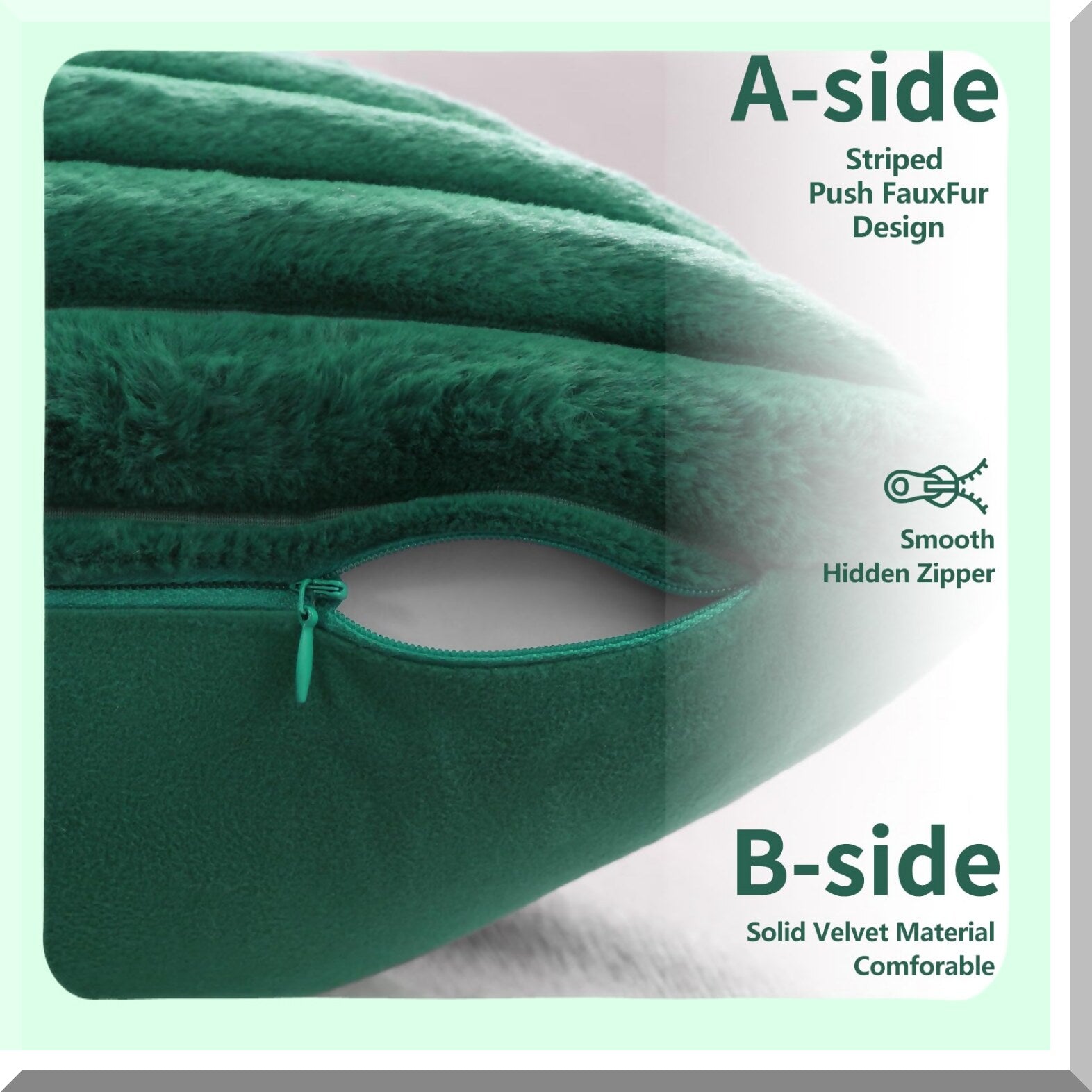 Luxury Fluffy Green Striped Pillow Covers - Set of 2 | Soft Plush Decorative Cushion Covers for Sofa, Couch, Living Room - 18x18