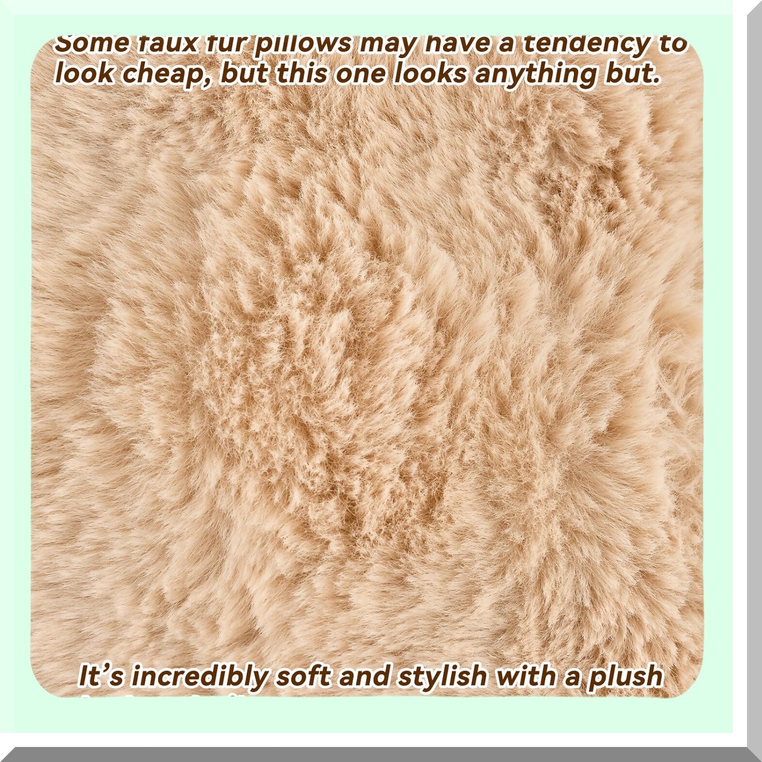 Rabbit Cozy 3D Fuzzy Pillow Covers - Set of 2 Super Soft Cushion Cases for Couch Sofa & Bedroom, 18 x 18-Inch Camel - Dense & Plush