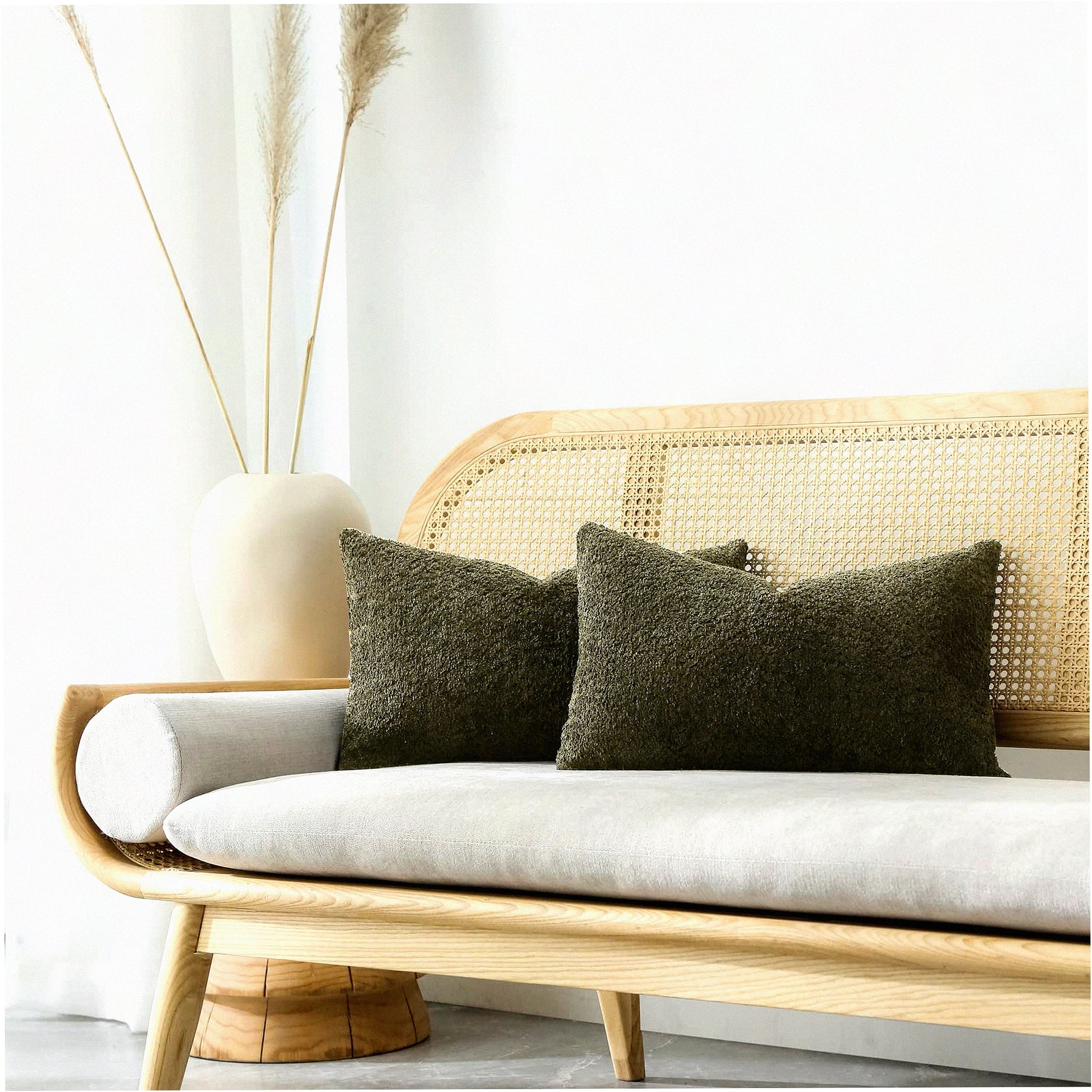 Rustic Farmhouse Textured Throw Pillow Covers Set of 2 - 12x20 Decorative Cushion Cases for Bed & Couch, Neutral Olive Green Accent Pillows for Living Room