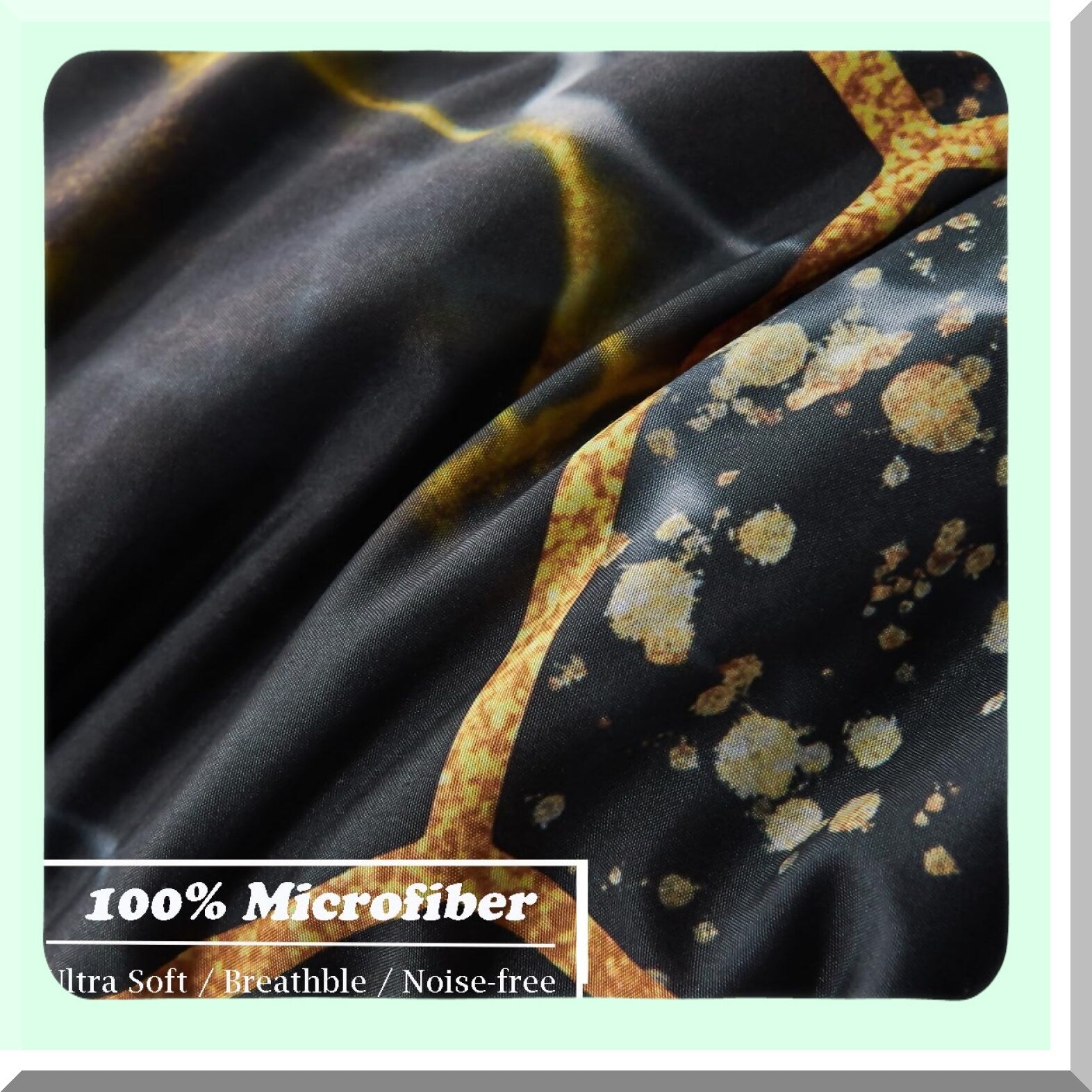 Gold Hexagon Comforter Set - 7 Piece Queen Size Geometric Bedding with Black Sheets & Trim - Honeycomb Print Design for Elegant Bedroom Decor