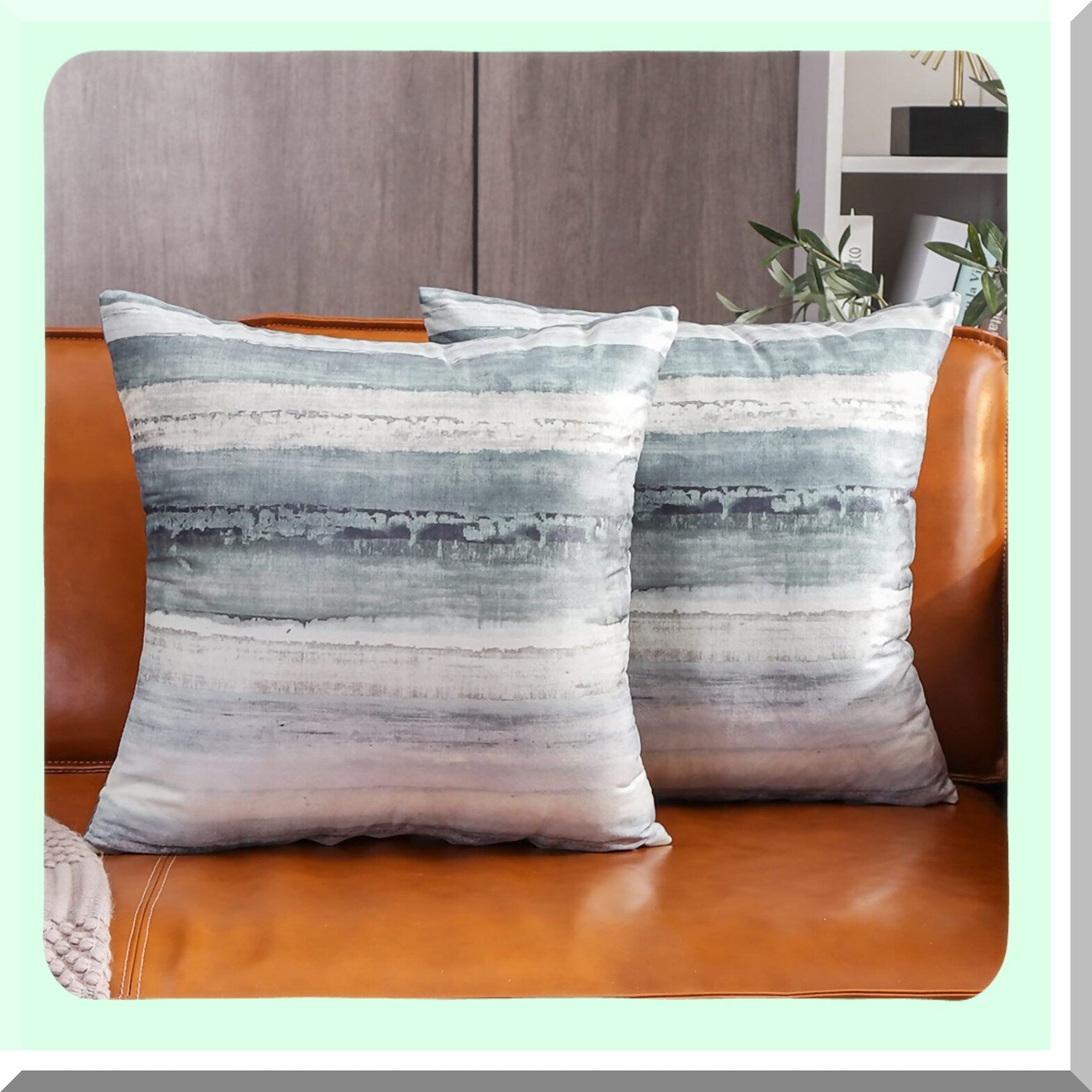 Abstract Watercolor Velvet Throw Pillow Covers - Soft Decorative Cushion Cover Set, Modern Double-Sided Pillowcases for Couch, 18 x 18 inch, Pack of 2, Grey