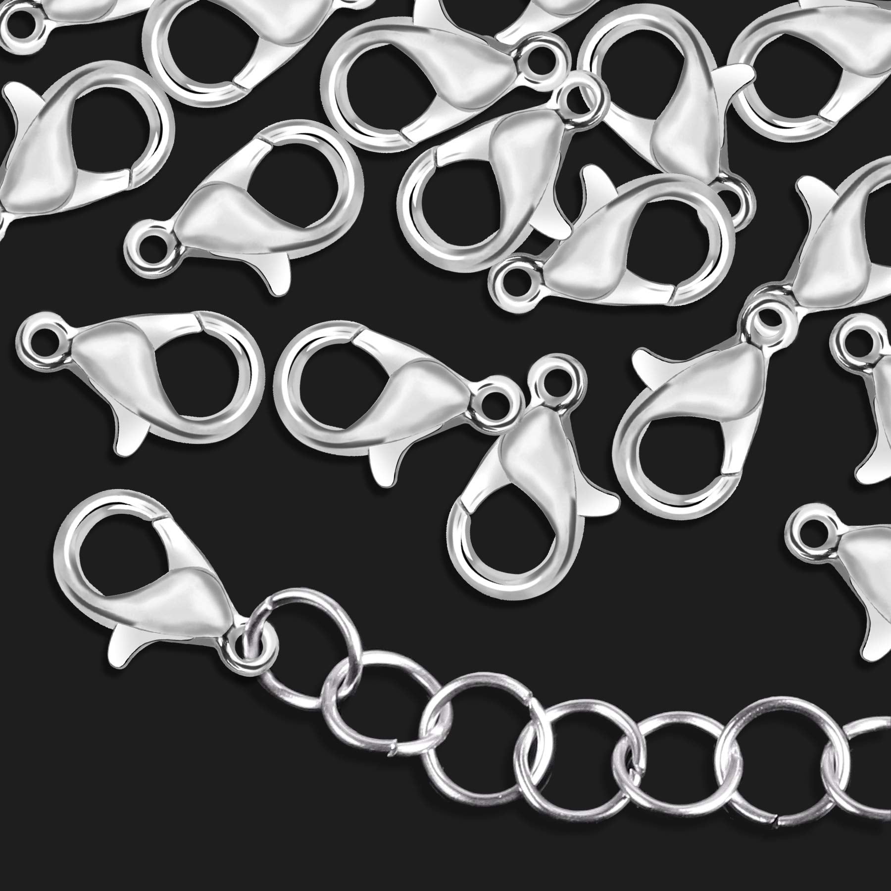 This set includes 200 silver lobster claw clasps and 200 open jump rings, perfect for jewelry making and DIY craft projects. Made from durable zinc alloy, these clasps are resistant to rust and designed for long-lasting use. The lobster clasps measure approximately 12mm by 7mm, while the jump rings have a diameter of 6mm, making them suitable for connecting bracelets, necklaces, anklets, and other jewelry pieces. The clasps are easy to open and close smoothly, facilitating quick assembly and secure fastening. These versatile components are ideal for creating custom jewelry, replacing broken fasteners, or enhancing craft projects. The silver finish provides a sleek, professional look, suitable for various jewelry designs. Whether you're a hobbyist or a professional jewelry maker, this bulk set offers ample supplies for multiple projects, ensuring you have reliable fasteners for all your beading and jewelry assembly needs.