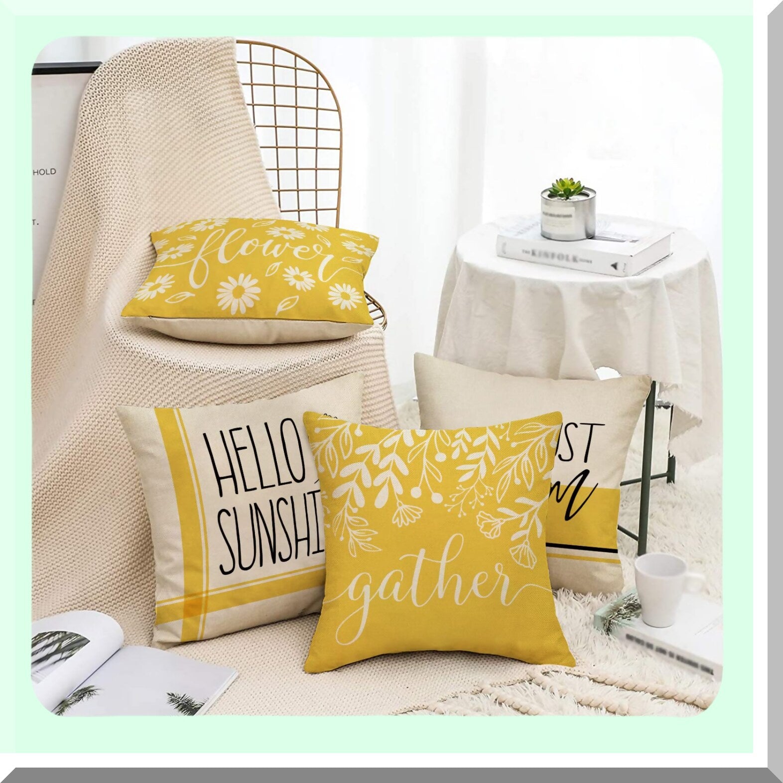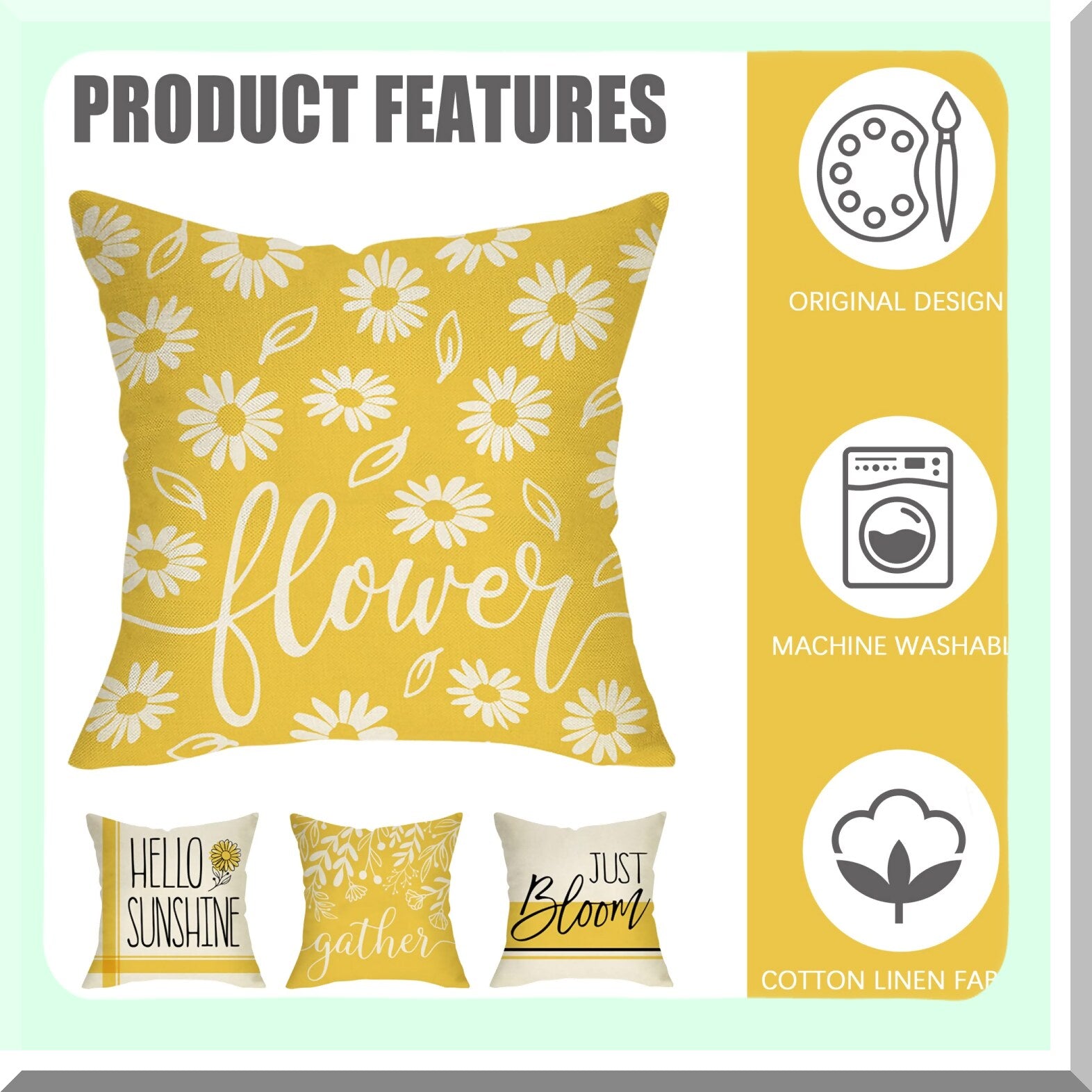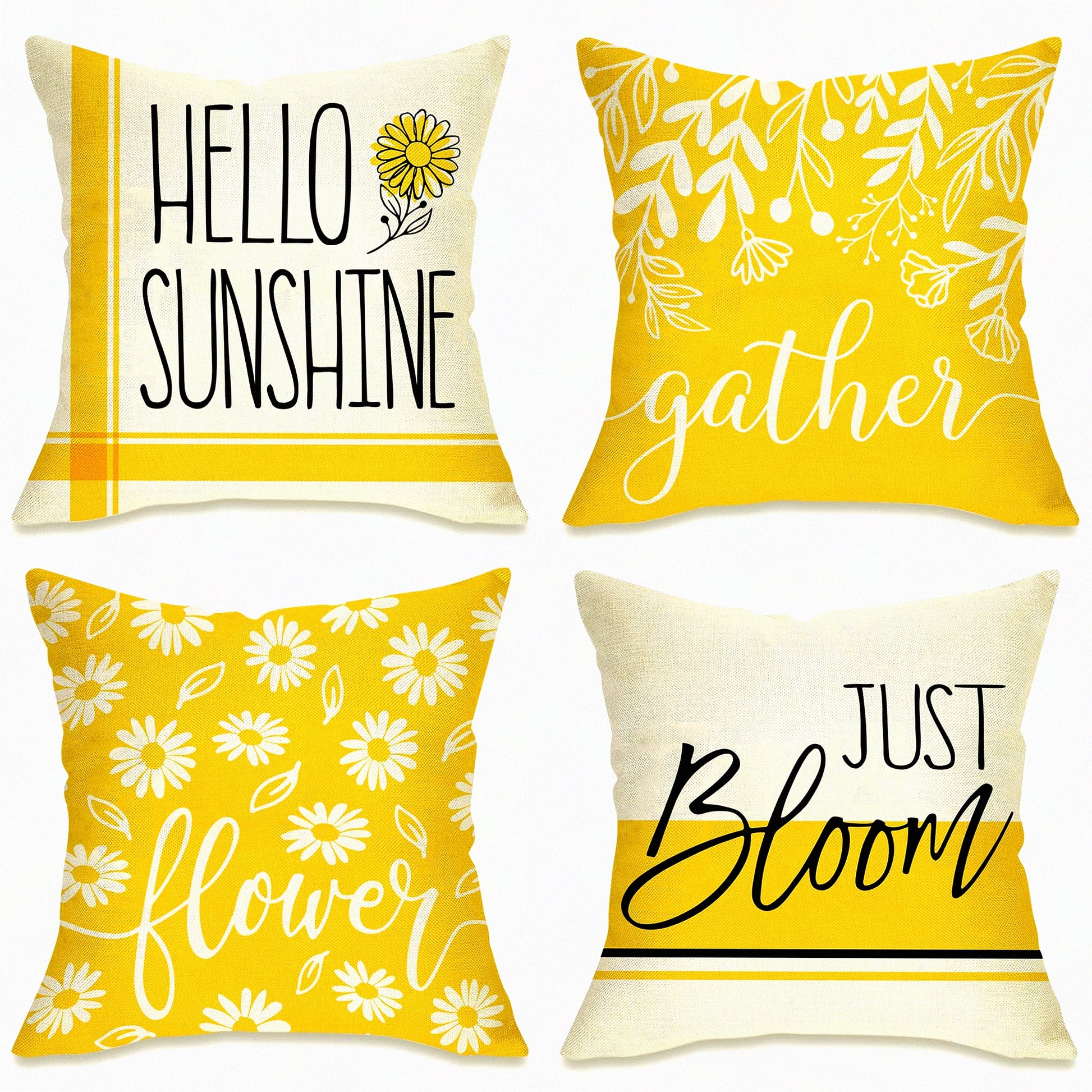 Sunshine Bloom Floral Outdoor Pillowcase Set - Yellow Daisy Decorative Throw Pillow Cover 20x20, Spring Summer Porch Patio Cushion Case for Sofa Couch Home Decor - Just Gather and Relax