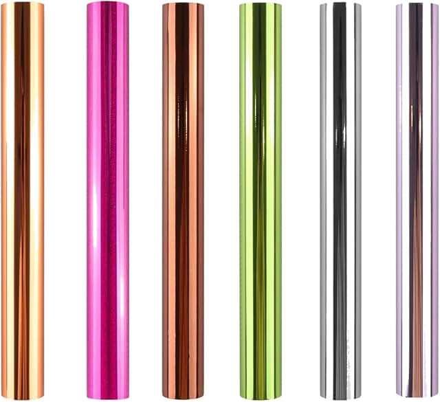 This is a 6-color metallic foil paper roll designed for arts and crafts, classroom activities, and artistic projects. The roll measures 7.6 inches in width and 196 inches in length. It features a toner-reactive surface that allows for creative applications and decorative effects. The foil paper is suitable for various craft projects, adding a shiny, metallic finish to designs. Its versatile colors and size make it ideal for enhancing artwork, scrapbooking, and other creative endeavors.