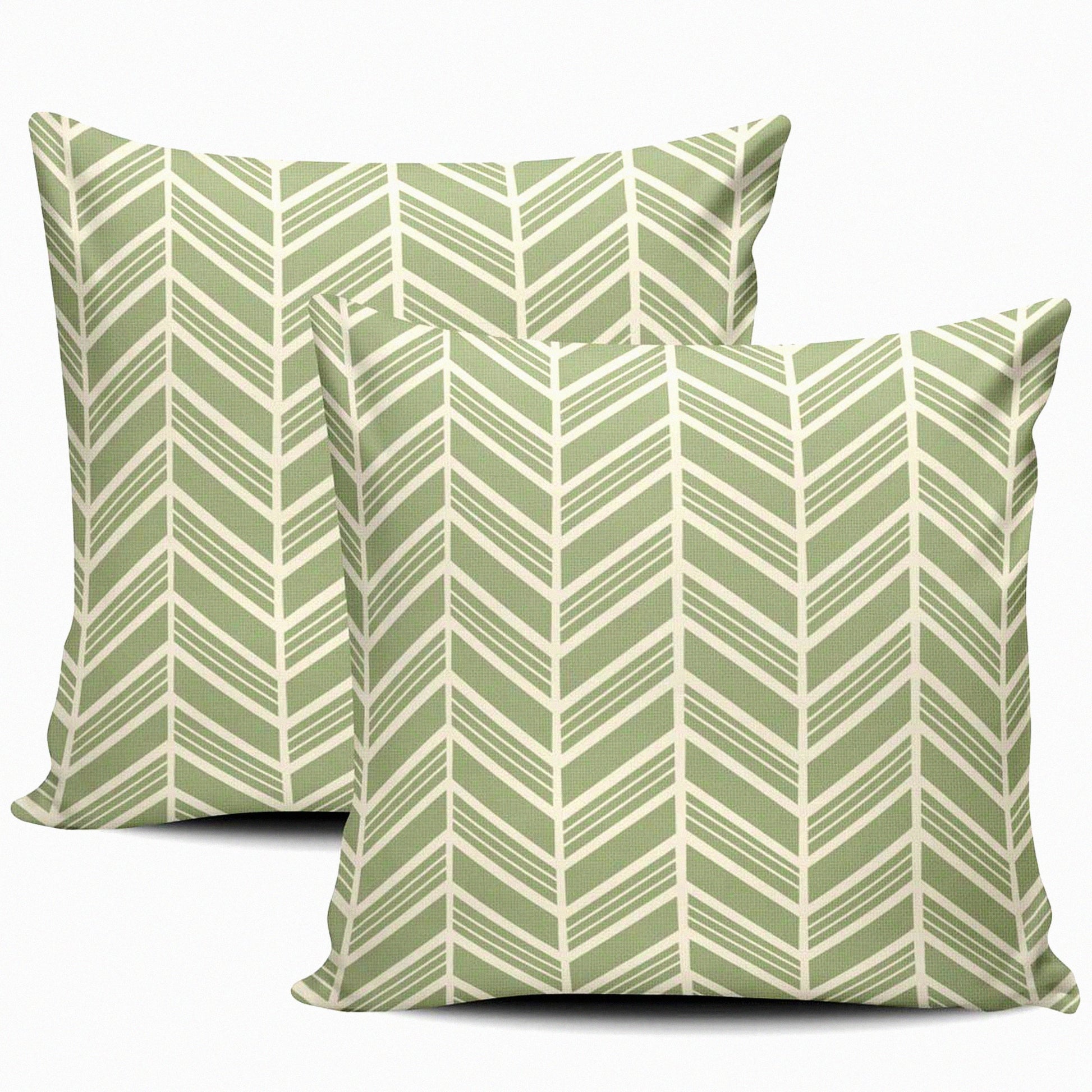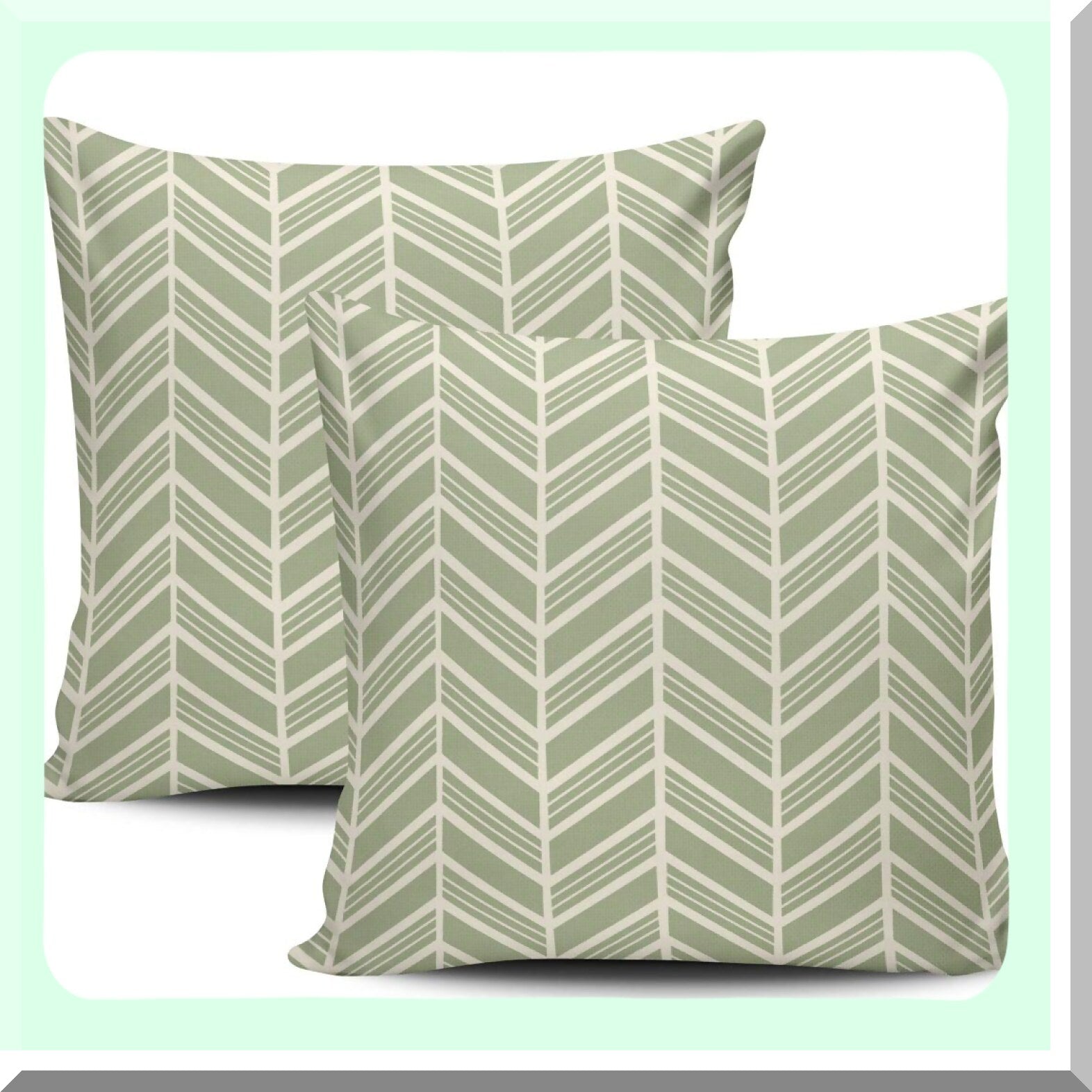 Herringbone Sage Green Square Pillowcase Set - 2 Pack 18x18 Inch Double Sided Print Cushion Covers for Sofa Decoration - White Throw Pillow Covers