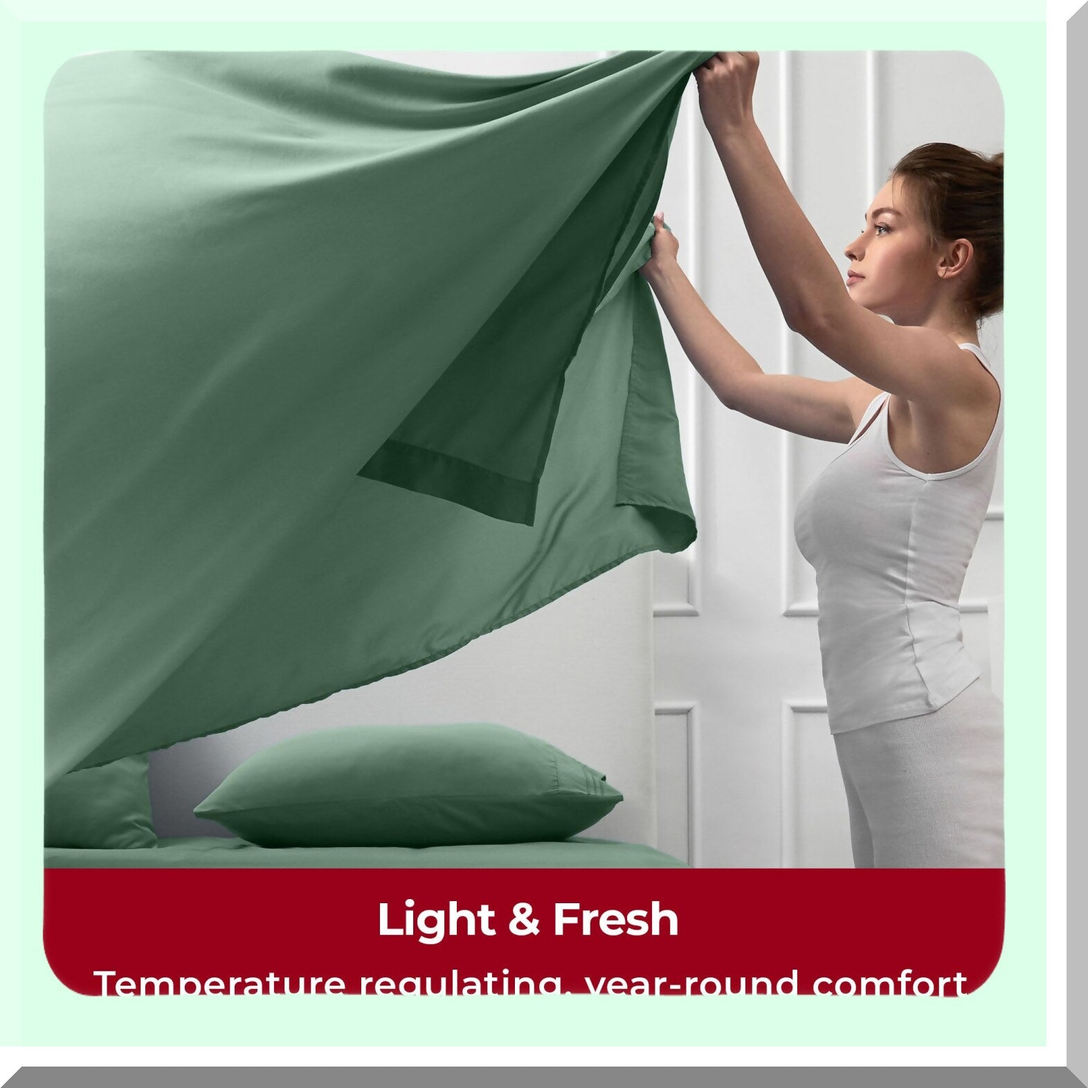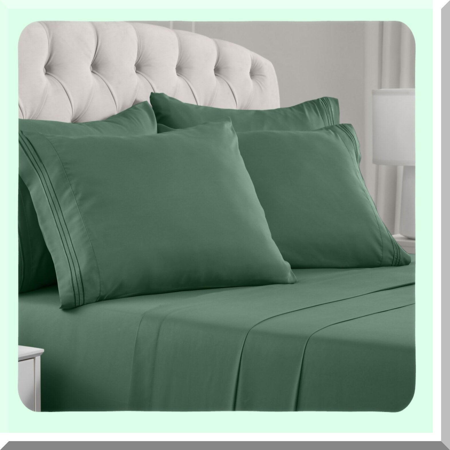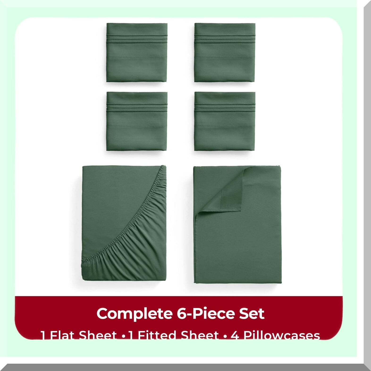 Luxury Emerald Green Cooling Queen Bedding Set - Ultra Soft 6 PC Iconic Collection Sheets & Pillowcases, Deep Pocket up to 16" - Hotel Quality