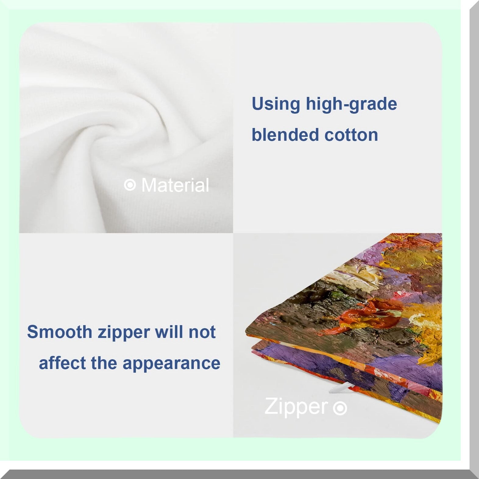 Colorful abstract paint throw pillow covers offer a vibrant and modern aesthetic, enhancing the visual appeal of couches, sofas, and beds. The multicolor design adds a lively touch to any room. Made from blended fabric, these covers are durable and comfortable. The digital printing ensures high-quality, long-lasting colors. An invisible zipper provides a seamless look and easy removal for cleaning. Sized at 20x20 inches, they fit standard pillows, making them a versatile and practical addition to home decor.