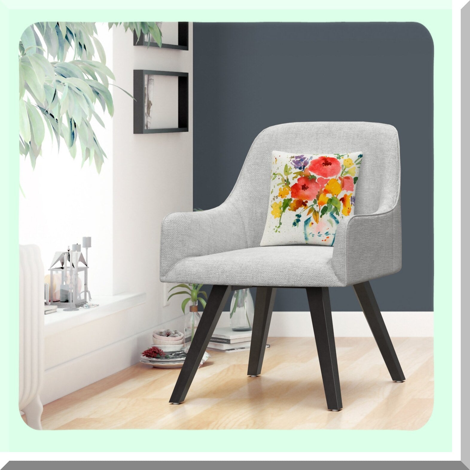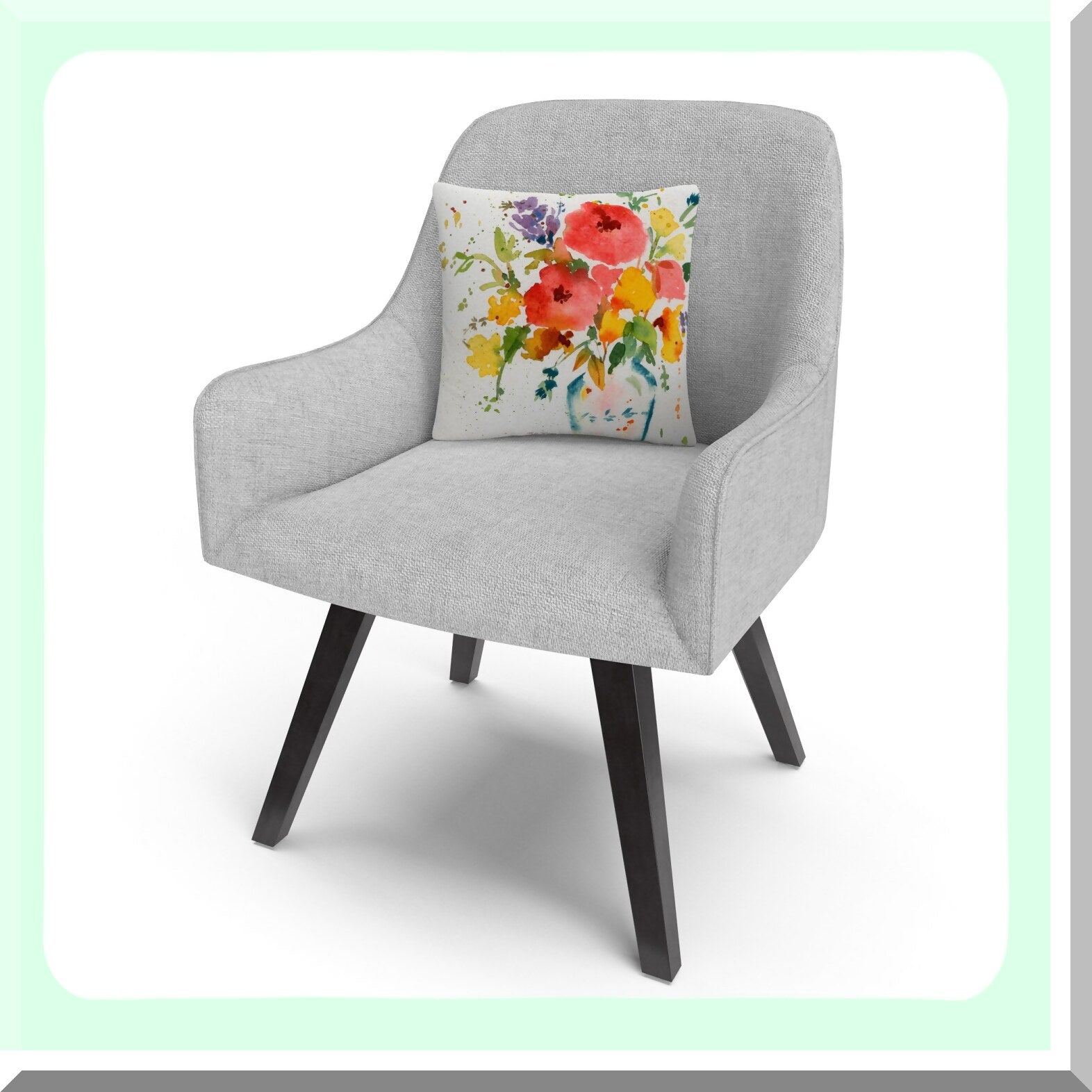Bright Blooms Decorative Pillow - White Vase Floral Cushion 16x16 - Multicolor Flower Throw Pillow - Sheila Golden Inspired Home Accent
