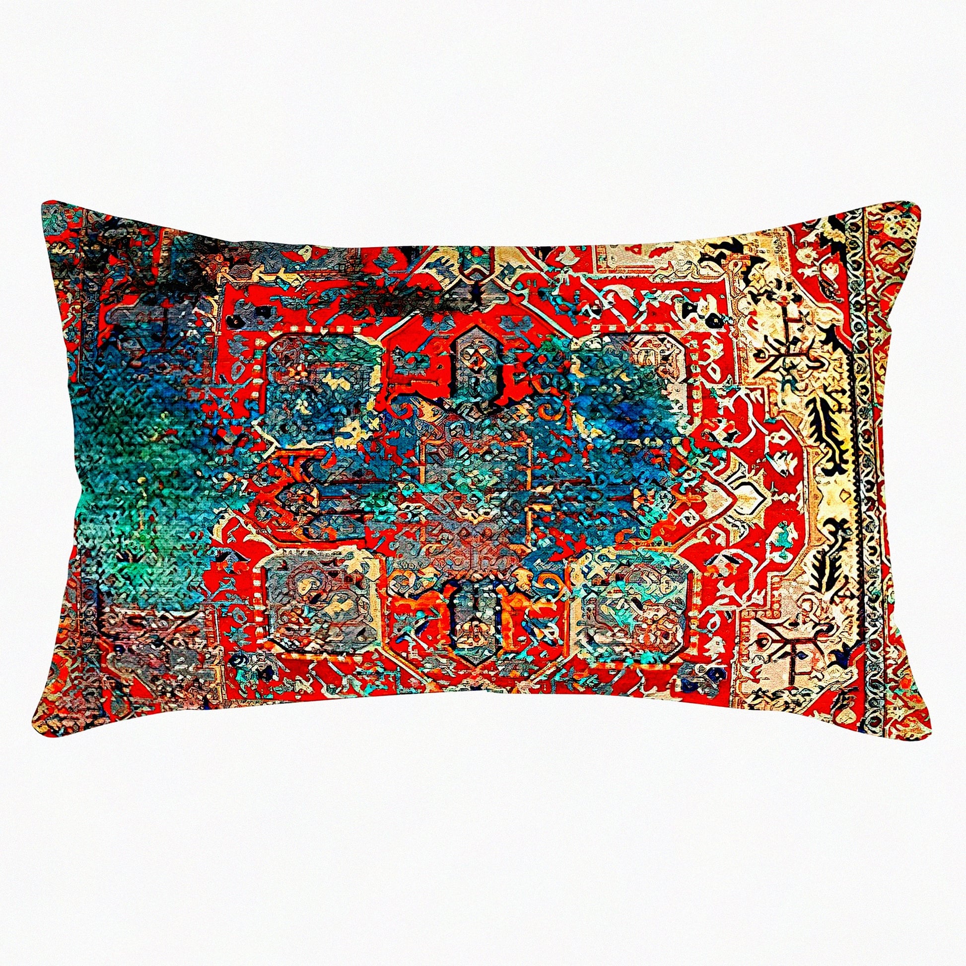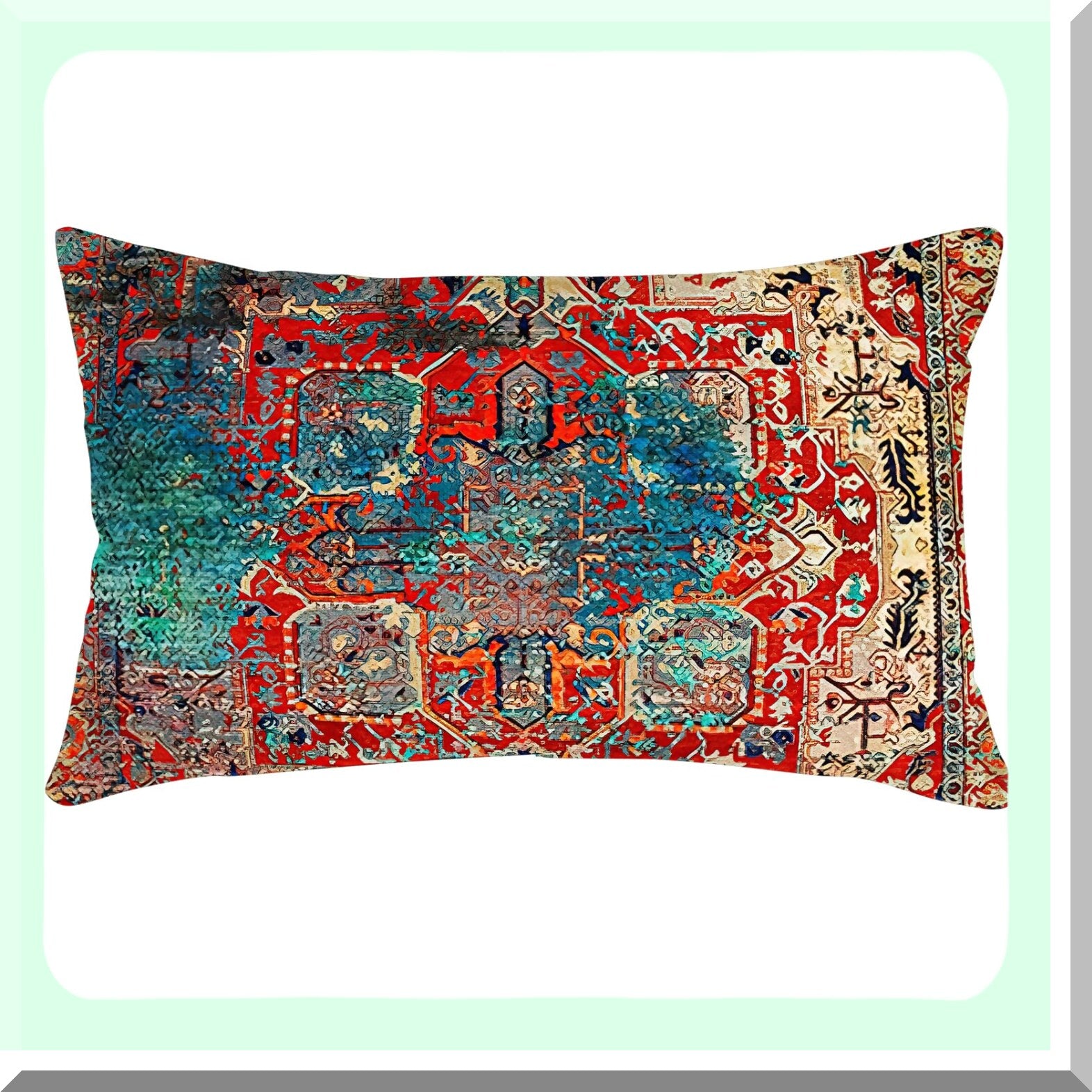 Vintage Persian Boho Red Blue Linen Pillowcase - Ethnic Decorative Throw Pillow Cover 12x20 Inch - Antique Home Decor Cases